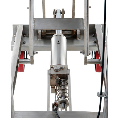Reduce the Risk of Injury from Lifting and Bending This compact, maneuverable stainless steel scissor lift is the ergonomically efficient solution to lifting, transporting, and positioning heavy loads in corrosive environments. Raise cargo to the perfect lifting height with the foot-operated hydraulic pump. Smoothly lower even heavy loads with the convenient finger release. Added safety is included with an anti-slip rubber foot pedal surface. Durable Grade 316 stainless steel construction offers maximum rust-resistance. Rolls easily on 2 fixed and 2 swivel (with brakes) 5" polyurethane casters. 2 Year Limited Warranty. Note: This unit is fully constructed of Grade 316 with the exception of the following components: - Wheels are Nylon with a Polyurethane surface - Pump Seals are Rubber / Plastic - Pump Piston and inner Pump compartment (the external Pump housing is stainless steel, and the inner pump is completely sealed from the external environment).