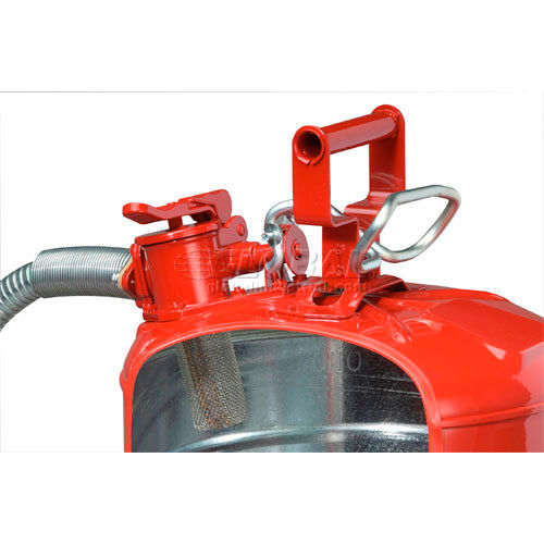 SAFETY CANS Includes 9"L Funnel and a rapid-fill opening Handle flammable liquids safely and easily! Engineered to help prevent flammables from igniting and to protect personnel from the dangers of fire and explosion. Flashback is prevented by double-mesh flame arrestor screen inside spout. Spring-loaded cap closes automatically after pouring. Long-life synthetic gasket resists virtually all liquids and maintains a tight seal. This Type II Filling Can has an independent rapid fill opening and a 9"L flexible metal nozzle. Stainless Steel Type 316 where high purity is crucial.