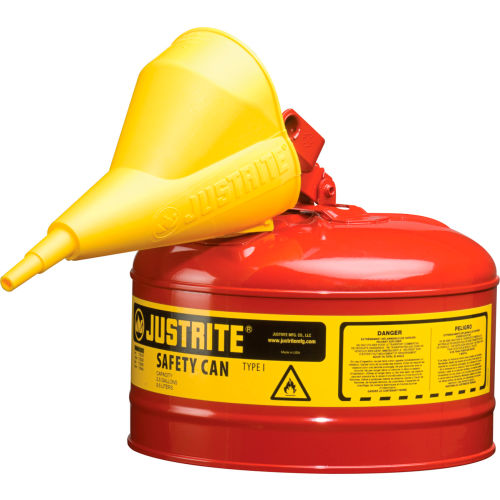 Buy Justrite Safety Can Type I-2-1/2 Gallon Galvanized Steel with Funnel, Red for $67.95 at @ Globalindustrial.com