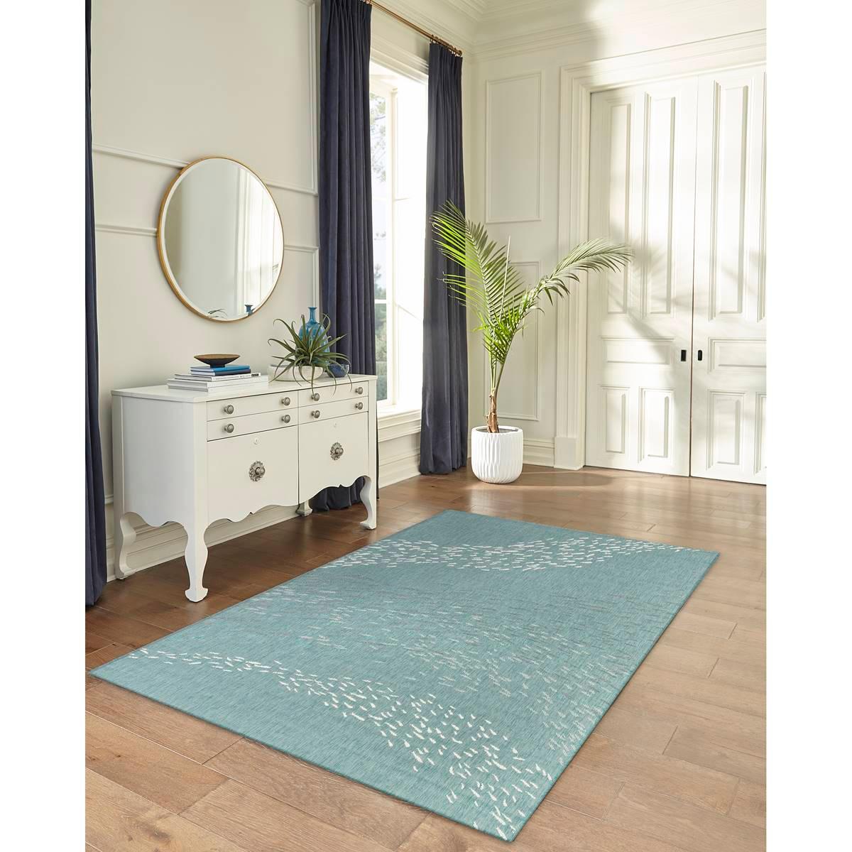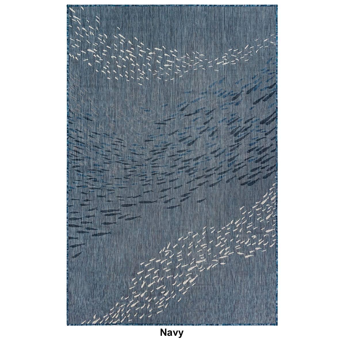 This Liora Manne Carmel School Of Fish Indoor/Outdoor Area Rug with dynamic swimming schools of fish brings a splash of tropical style to your home. The shapes with a contrasting background make this a subtle but striking sea life rug, perfect for welcoming guests. To clean rug, gently rinse with a solution of mild detergent and water, then hose rug clean. Vacuum regularly. Limited Manufacturer's Warranty.