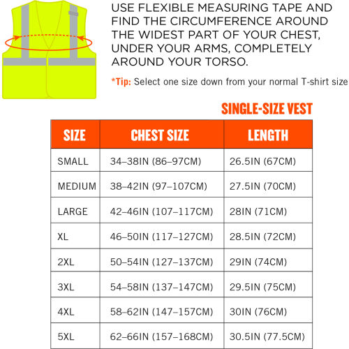 The GloWear 8215BA-S Mesh Hi-Vis Safety Vest is an ANSI 107 Type R, Class 2 vest made of 3.3oz polyester mesh with breakaway hook & loop on shoulders and sides for safety from snag hazards and moving parts. This hi-vis vest features 2 reflective tape for enhanced low-light visibility, plus a lower interior pocket and single mic tab. A hook & loop closure makes for easy on and off. SINGLE SIZING This vest is available in single sizes to allow workers to order their exact size for a more tailored, performance-style fit compared to dual-size vests (*tip: for best single-size fit, select one size down from your normal T-shirt size). The 8215BA Breakaway Hi-Vis Safety Vest is our identical dual-size model for those who prefer a looser fit for wear over sweatshirts or jackets. This reflective safety vest is ideal for anyone requiring Type R, Class 2 apparel, including road construction, baggage handling and municipalities. Features: HIGH VISIBILITY COMPLIANCE ANSI/ISEA 107, Type R Class 2 compliant with 2" reflective tape for low-light visibilityBREAKAWAY HOOK & LOOP On shoulders and sides for safety around snag hazards and moving partsLIGHTWEIGHT BREATHABILITY 3.3oz polyester meshEASY ON & OFF Hook & loop closureLOWER INTERIOR POCKET For storage of pens, notepads, etc.MIC TAB For convenient radio accessSINGLE SIZING Allows workers to order their exact size for optimal fit (*tip: select one size down from your normal T-shirt size)MACHINE WASHABLE.