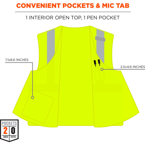 The GloWear 8263FRHL Hi-Vis FR Safety Vest is a Type R Class 2 vest compliant to ASTM F1506 for flame resistance. Designed to be worn as part of a complete FR garment system, this ANSI-approved mesh work vest is tested and certified to an ATPV 5.1 cal/cm, NFPA 70E CAT 1. FR & ANSI 107- COMPLIANT This ASTM F1506 and ANSI/ISEA 107 Class 2 safety vest is made of 60% modacrylic mesh and 40% cotton for comfort and breathability. This reflective vest also features a 2 FR reflective tape for heightened visibility at night or in low-light environments. POCKETS & ACCESSORIES Included in the vest are one interior pocket, one dual pen pocket and a single flame-resistant radio mic tab. There is D-ring access on the back for wearing over fall protection harnesses, and a hook & loop closure for easy on/off. This FR high-visibility vest is ideal for workers in occupations with electrical arc flash risk, including electrical and utilities. Features: FLAME RESISTANT Certified and tested to ASTM F1506; ATPV of 5.1 cal/cm; NFPA 70E CAT 1 for protection against arc flash hazardsHIGH VISIBILITY ANSI/ISEA 107, Type R Class 2 compliant with 2" FR reflective tape for low-light visibilityBREATHABLE FR MESH 6.1oz modacrylic mesh/cotton body and binding (60% modacrylic mesh, 40% cotton)EASY ON/OFF FR hook & loop closure with D-ring access on back of vest for wear over fall protection harnessesCONVENIENT POCKETS 1 interior, 1 dual pen pocketFR MIC TAB For convenient radio accessMACHINE WASHABLE.