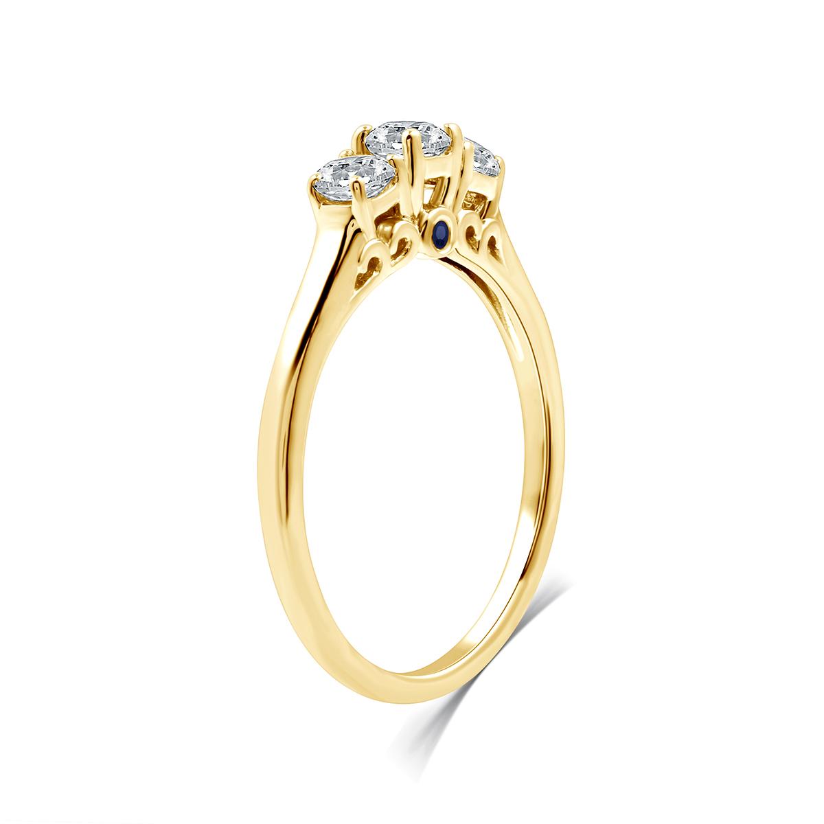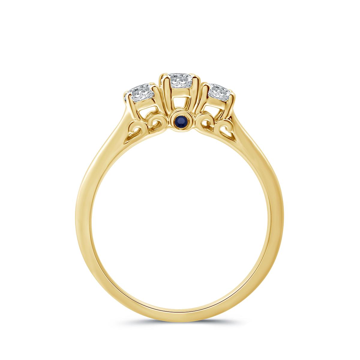 YellowPlated 1/2ctw. Lab Grown Diamond 3 Stone and Blue Sapphire Cathedral Bridal Ring Diamond Color: I Diamond Clarity: I1.