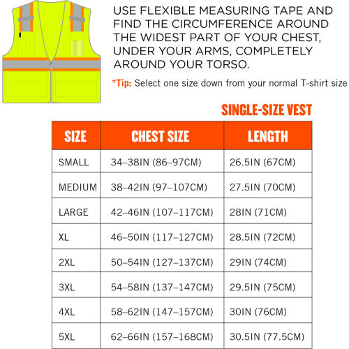 The GloWear 8246Z-S Mesh Two-Tone Hi-Vis Safety Vest is an ANSI 107 Type R, Class 2 vest made of 3.3oz polyester mesh. This hi-vis vest features 2 reflective tape set on a 3.5 contrasting mesh background and reflective piping for enhanced low-light visibility. Built for storage, this vest has two inside and four outside pockets, a clear ID badge holder and dual radio mic tabs. A zipper closure makes for easy on and off. SINGLE SIZING This vest is available in single sizes to allow workers to order their exact size for a more tailored, performance-style fit compared to dual-size vests (*tip: for best single-size fit, select one size down from your normal T-shirt size). The 8246Z Two-Tone Hi-Vis Safety Vest is our identical dual-size model for those who prefer a looser fit for wear over sweatshirts or jackets. This reflective safety vest is ideal for anyone requiring Type R, Class 2 apparel, including road construction, baggage handling and municipalities. Features: HIGH VISIBILITY ANSI/ISEA 107, Type R Class 2 compliantTWO-TONE REFLECTIVE + PIPING 2" reflective tape on 3.5" contrasting mesh plus reflective piping for enhanced low-light visibilityLIGHTWEIGHT BREATHABILITY 3.3oz polyester meshEASY ON & OFF Zipper closurePOCKETS 2 interior, 4 exterior for maximum storageID BADGE HOLDER For easy access and identificationDUAL MIC TABS For convenient radio accessSINGLE SIZING Allows workers to order their exact size for optimal fit (*tip: select one size down from your normal T-shirt size)MACHINE WASHABLE.
