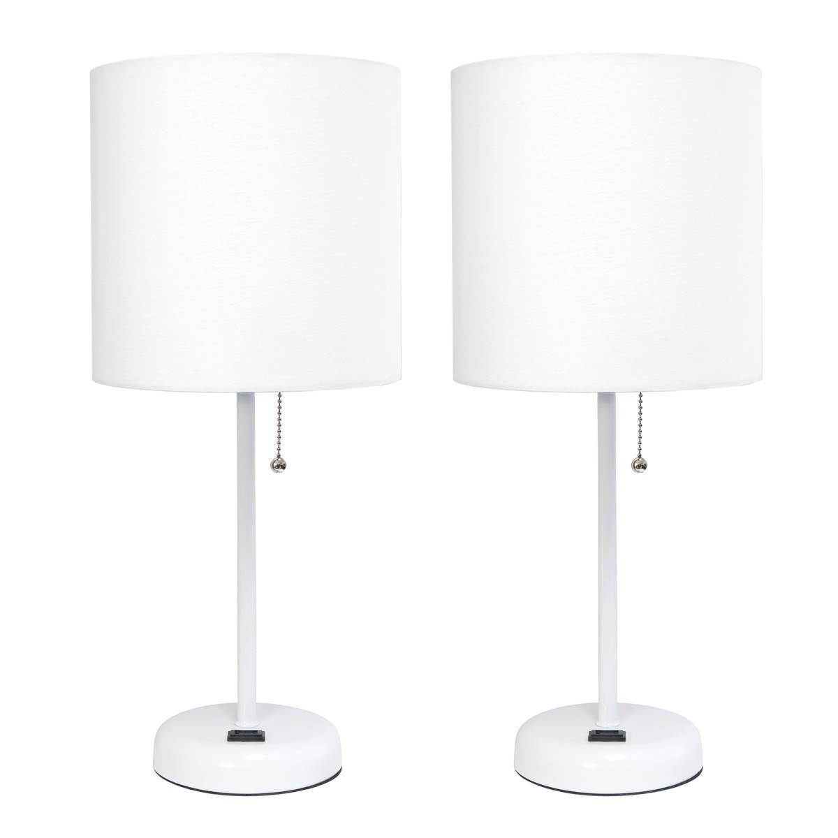 LimeLightsStick Lamp wCharging Outlet/White Shade-Set of 2