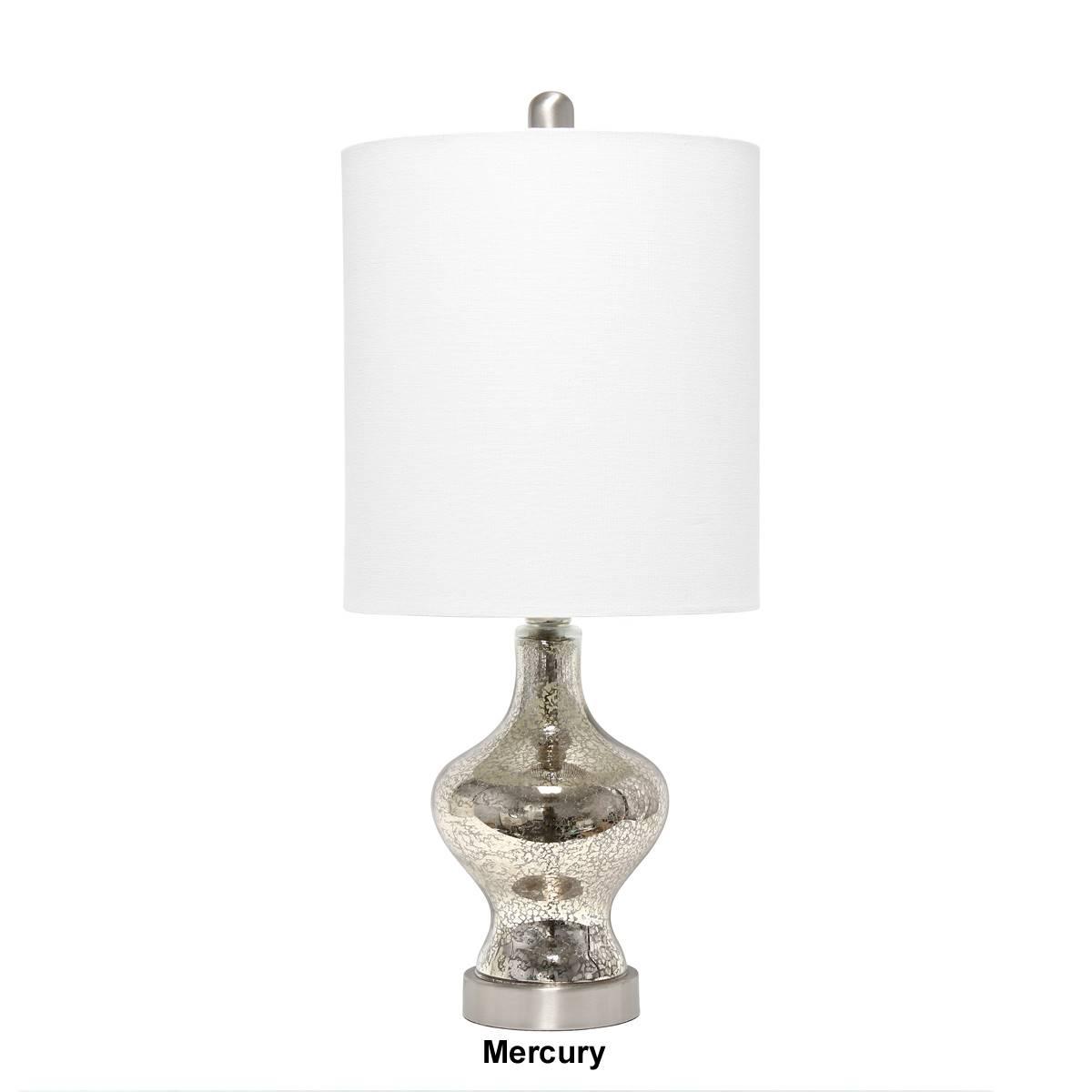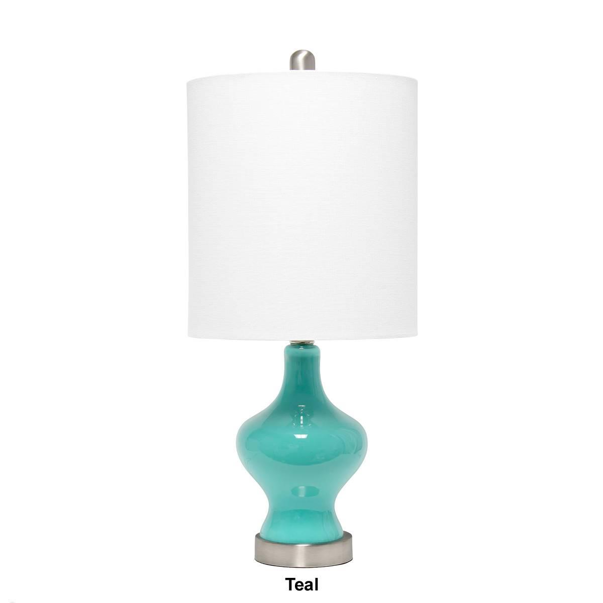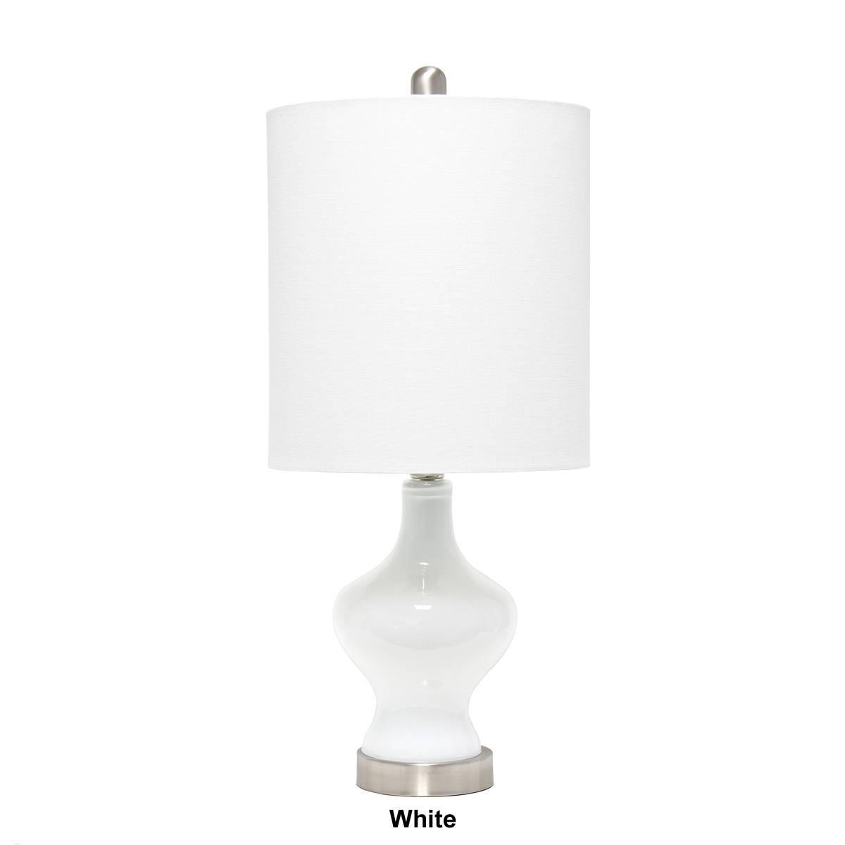 Simple and elegant, this Lalia Home lamp is sure to make a tasteful update to any room in your home. This lamp features a beautifully shaped glass base. Includes a white fabric drum shade. Rejuvenate your bedroom, living room, foyer, or office with this trendy lamp! Collection: Classix Model LHT-5003 Requires 60W medium type A base bulb (not included) Contemporary, classic look Easily accessible rotary switch located on the socket Material: 48% Fabric, 48% Glass, 3% Metal, 1% Plastic 1 Year Limited Against Manufacturer Defects.