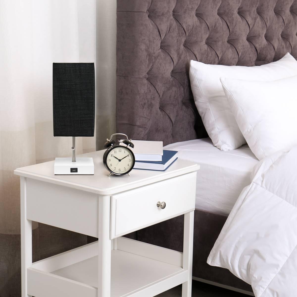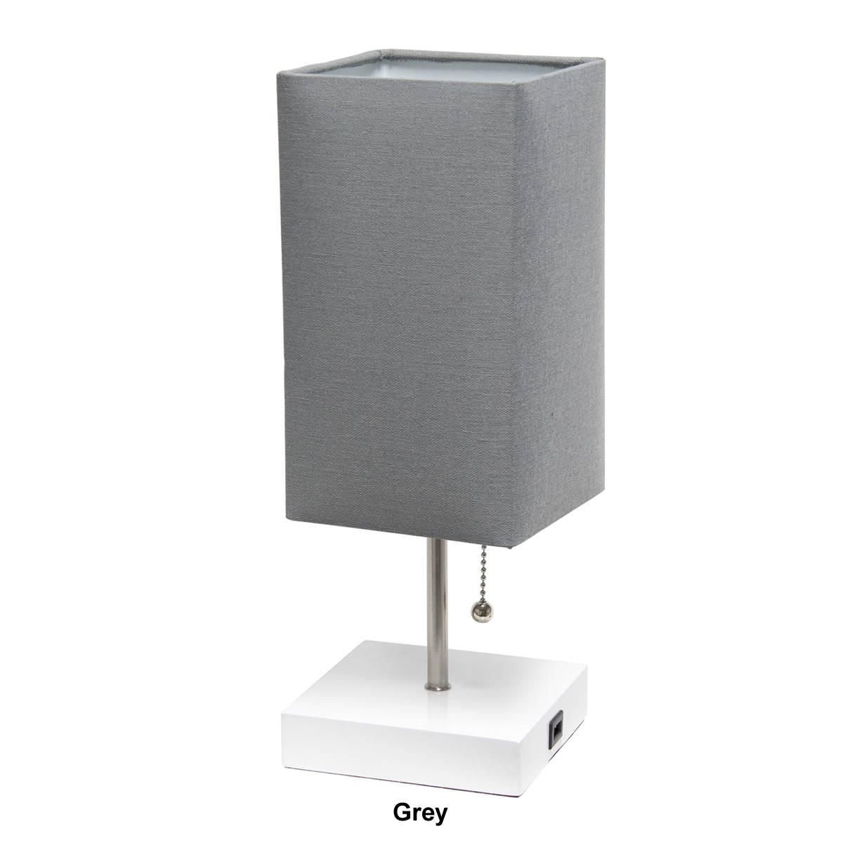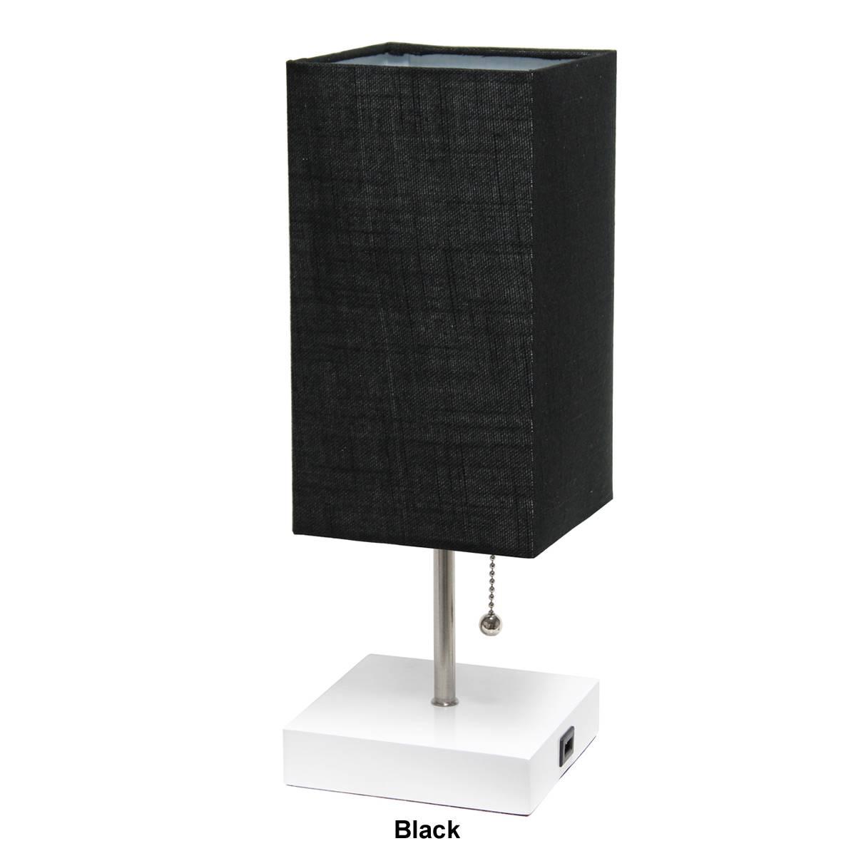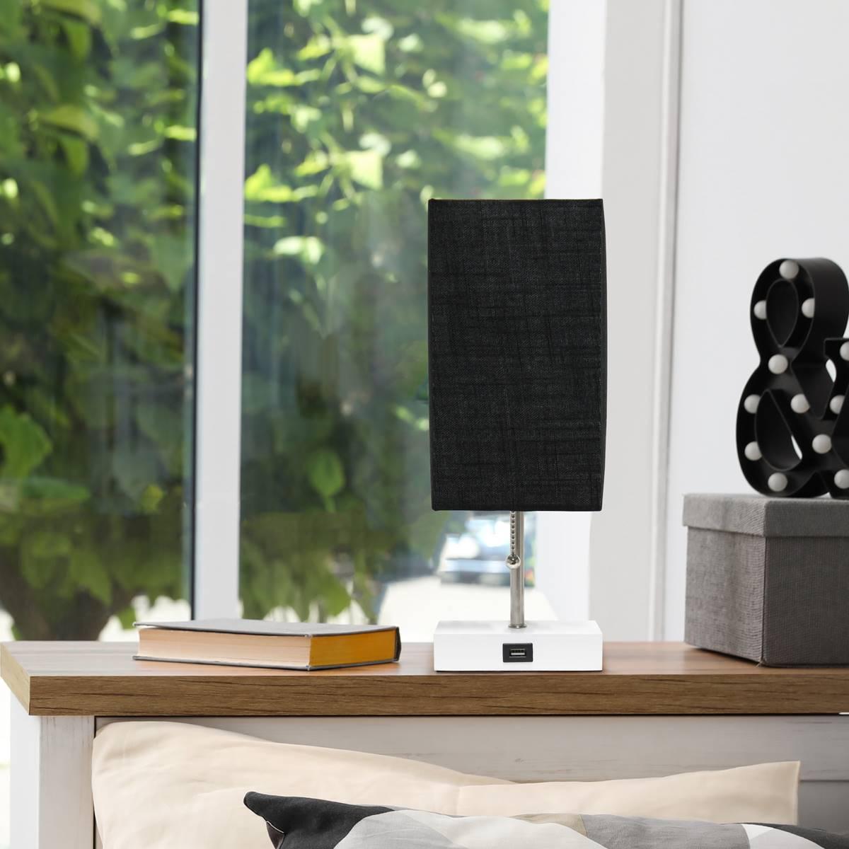Simple Designs Petite White Stick Lamp w/USB Port & Fabric Shade