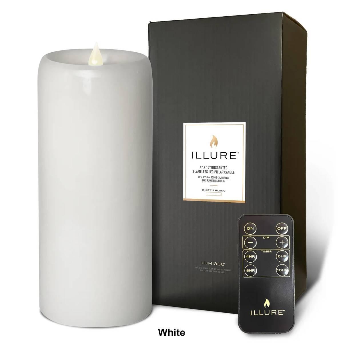Buy Illure 4x10 Wax Core Pillar Flameless LED Candle w/ Remote for $23.99 at @ Boscovs.com