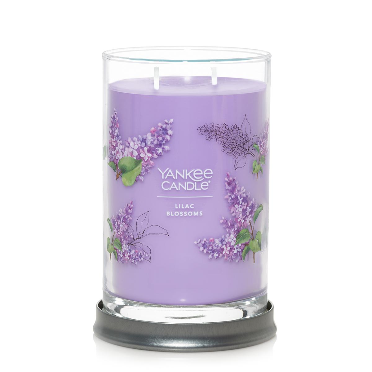The Yankee Candle(R) signature large 2-wick lilac blossom Tumbler candle features a scent of an alluring grove of lavender, white and deep purple lilacs. Experience the Yankee Candle(R) brand, totally reimagined. A fresh take on our Tumbler shape features a brushed tin lid that fits neatly under the base to serve as a candle coaster. Two cotton wicks and a premium soy-wax blend provide a clean burn. Hand-illustrated labels and vibrant wax colors are perfectly matched with Collection-exclusive and tried-and-true fragrances to create an inspired addition to your home. Burn Time: 60-100 hours.