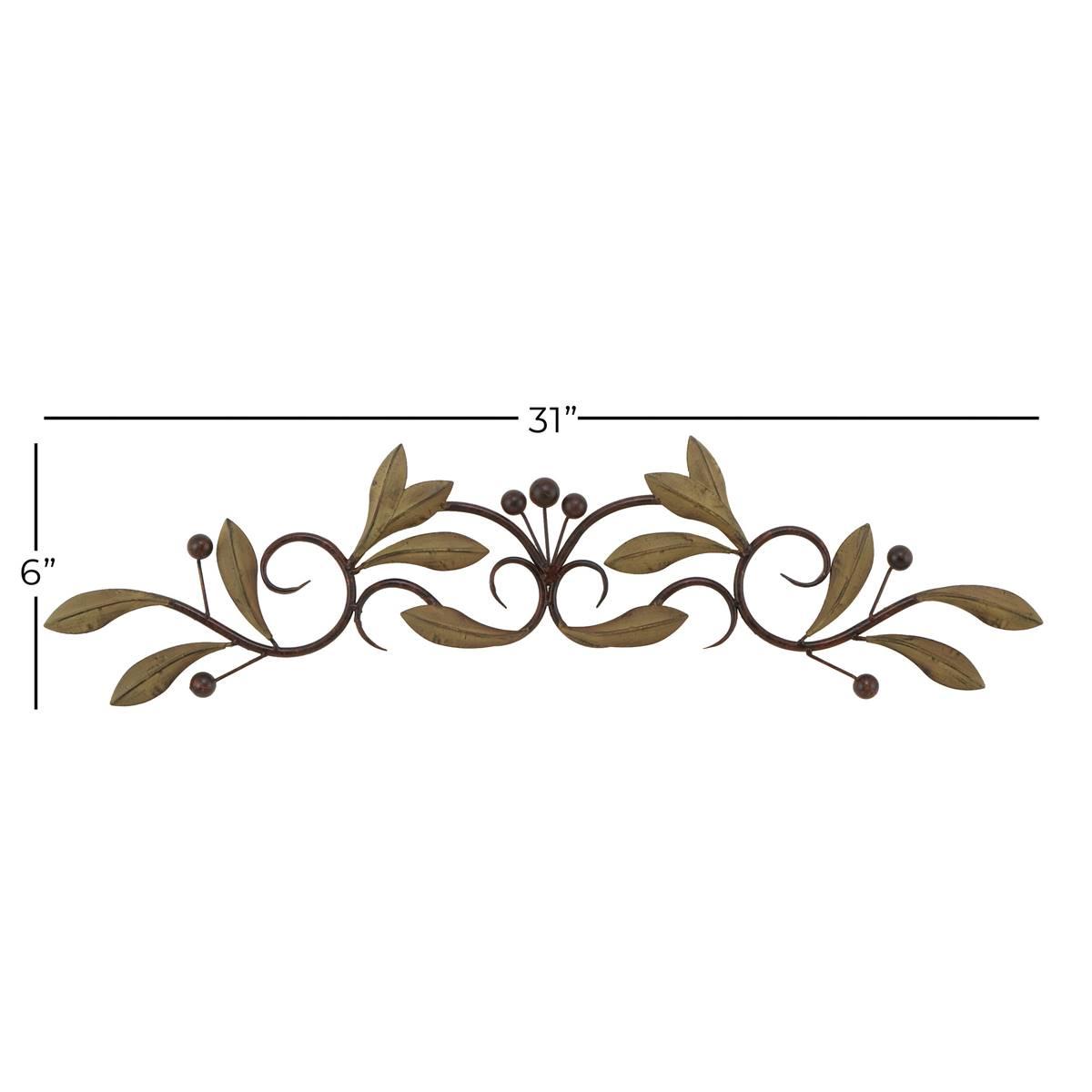 Take a little piece of nature with you back at home as you hang this 9th & Pike(R) leaves and berries metal wall decor. This small wall decor displays leaves with berries and scrolled vines in texturedand brown finish. Their sweet and crafty exterior is comprised of solid iron material, offering durability and versatile functionality. This item requires oversize delivery. Please refer to the Order Summary in the Shipping step at checkout for delivery charge.