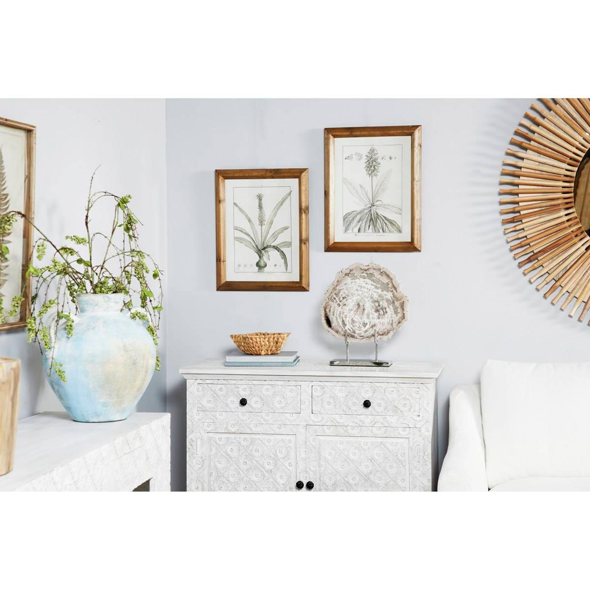 Any vintage or rustic-styled home needs this set of two 9th & Pike(R) large vintage botanical prints. Each botanical illustration has great detail throughout the leaves, pollen, buds, and roots and is finished with the plant genus and species at the base of the drawing. Both of these scientific botanical illustrations are housed in large, rectangular,wood frames made from Chinese fir wood for an added rustic touch to this lovely vintage wall decor. This item requires oversize delivery. Please refer to the Order Summary in the Shipping step at checkout for delivery charge.