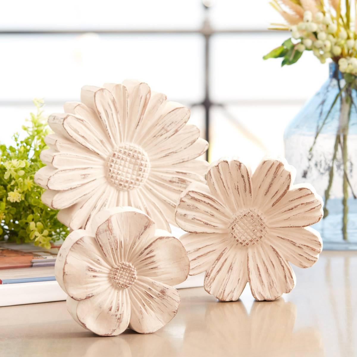 Buy Melrose White Washed Stone Flower Decor - Set of 3 for $44.99 at @ Boscovs.com