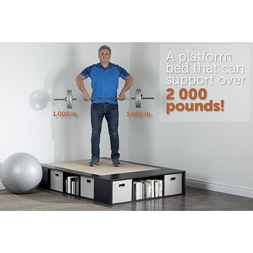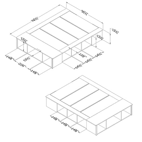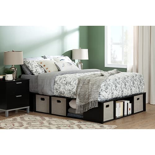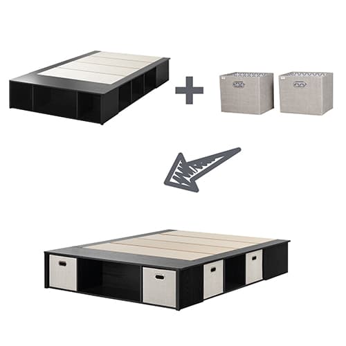 This South Shore Flexible full size platform bed with storage and baskets give you more storage space without compromising your bedroom decor. The open spaces in this bed and 4 baskets that are included are great for storing linens and books. It includes 4 taupe fabric storage baskets. Made with laminated Particleboard. Wipe with a soft dry cloth to clean. Dimensions: 13.75"H x 56"W x 76.75"D. Limited Manufacturer's Warranty. This item requires oversize delivery. Please refer to the Order Summary in the Shipping step at checkout for delivery charge.