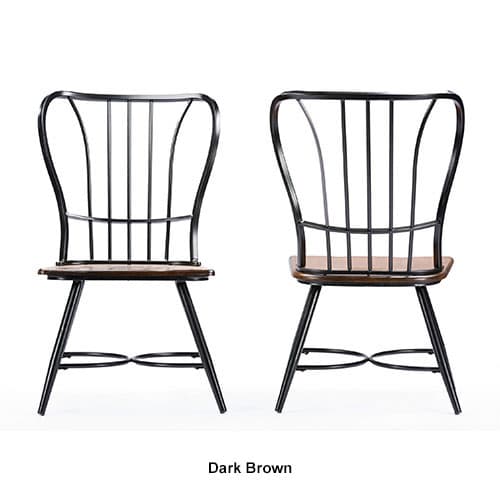 This Baxton Studio Longford vintage set of 2 industrial dining chairs celebrate your dining experience unfettered. Ingeniously combining wood and metal construction, this dining chair features a vintage-industrial vibe yet makes a contemporary statement all the same. The black-metal vertically-lined back expresses an airiness while the dark-walnut-finished wood seat conveys warmth. Wipe with a dry cloth to clean. Dimensions per chair: 38"H x 21"W x 26"D. Limited Manufacturer's Warranty. This item requires oversize delivery. Please refer to the Order Summary in the Shipping step at checkout for delivery charge.