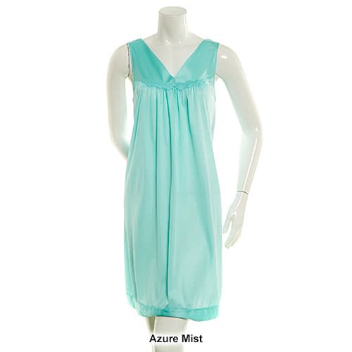 Plus Size Exquisite Form sleeveless nightgown is solid with floral applique trim at the v-neck. 100% Nylon. Machine wash. Tumble dry.