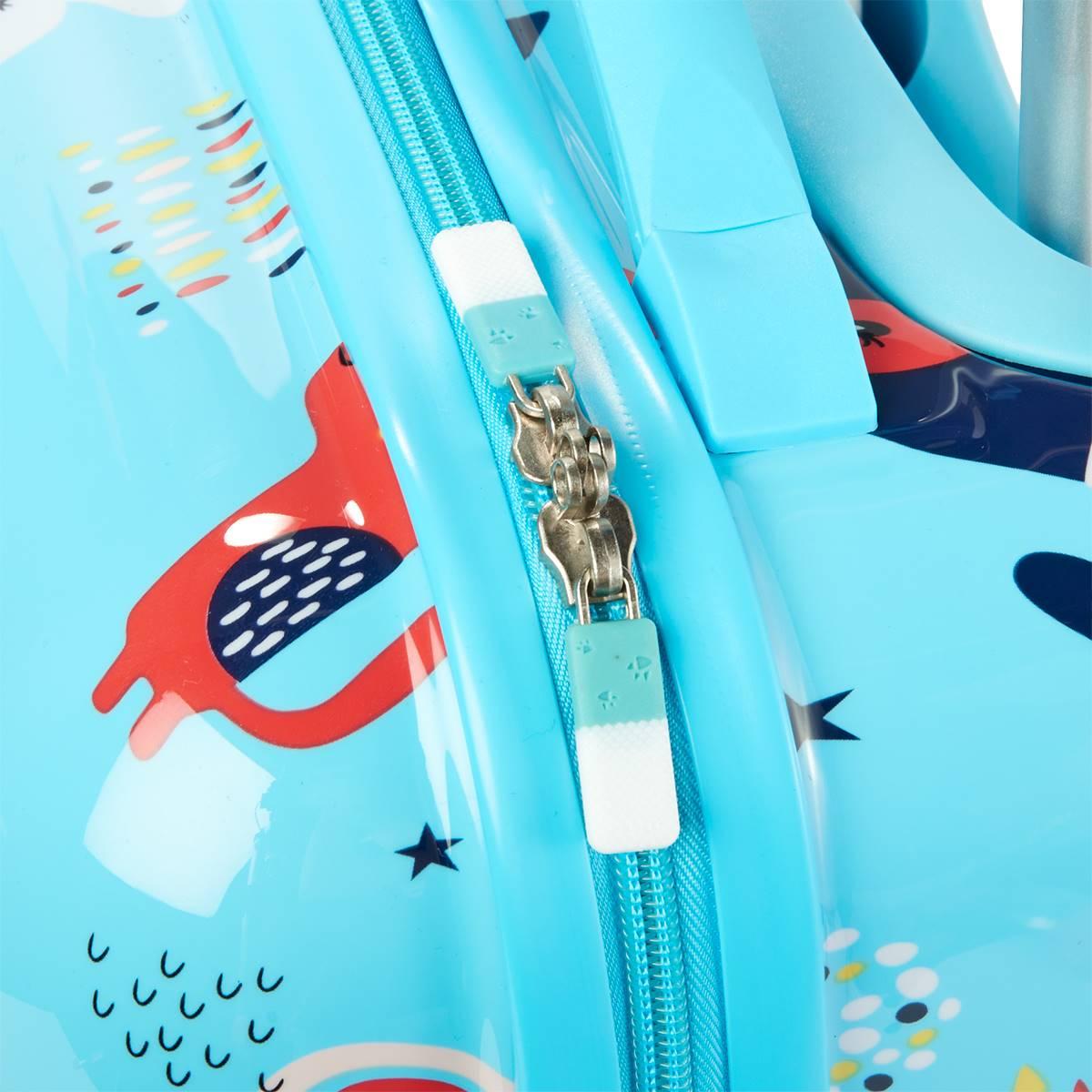 Pattern: Dogs Durable and lightweight ABS material in various prints. Book opening design with a divider panel, and adjustable tie-down straps. Push button 2-stage locking trolley handle. Top carry handle. Spinner wheels for easy maneuverability. Dimensions: 18" x 12" x 8.7" Weight: 4lbs.