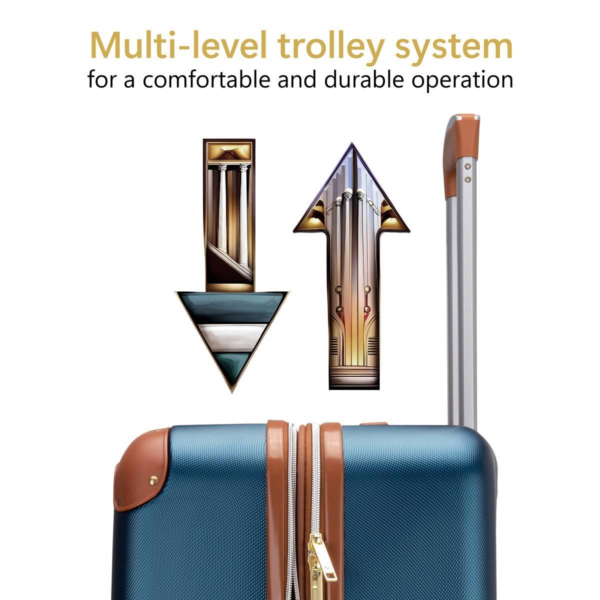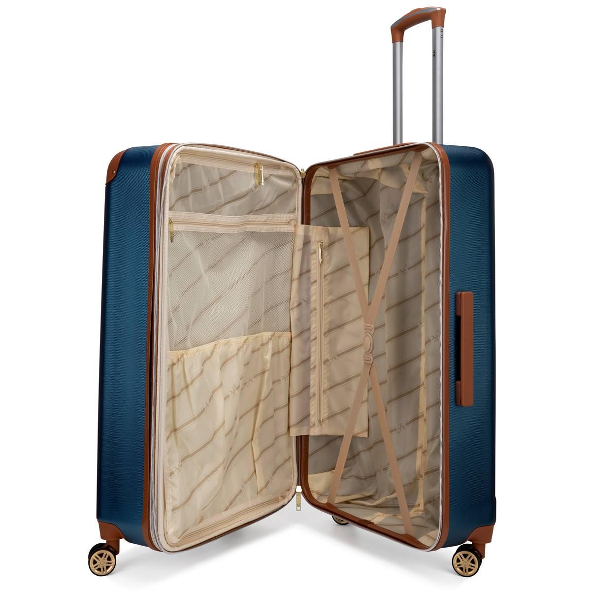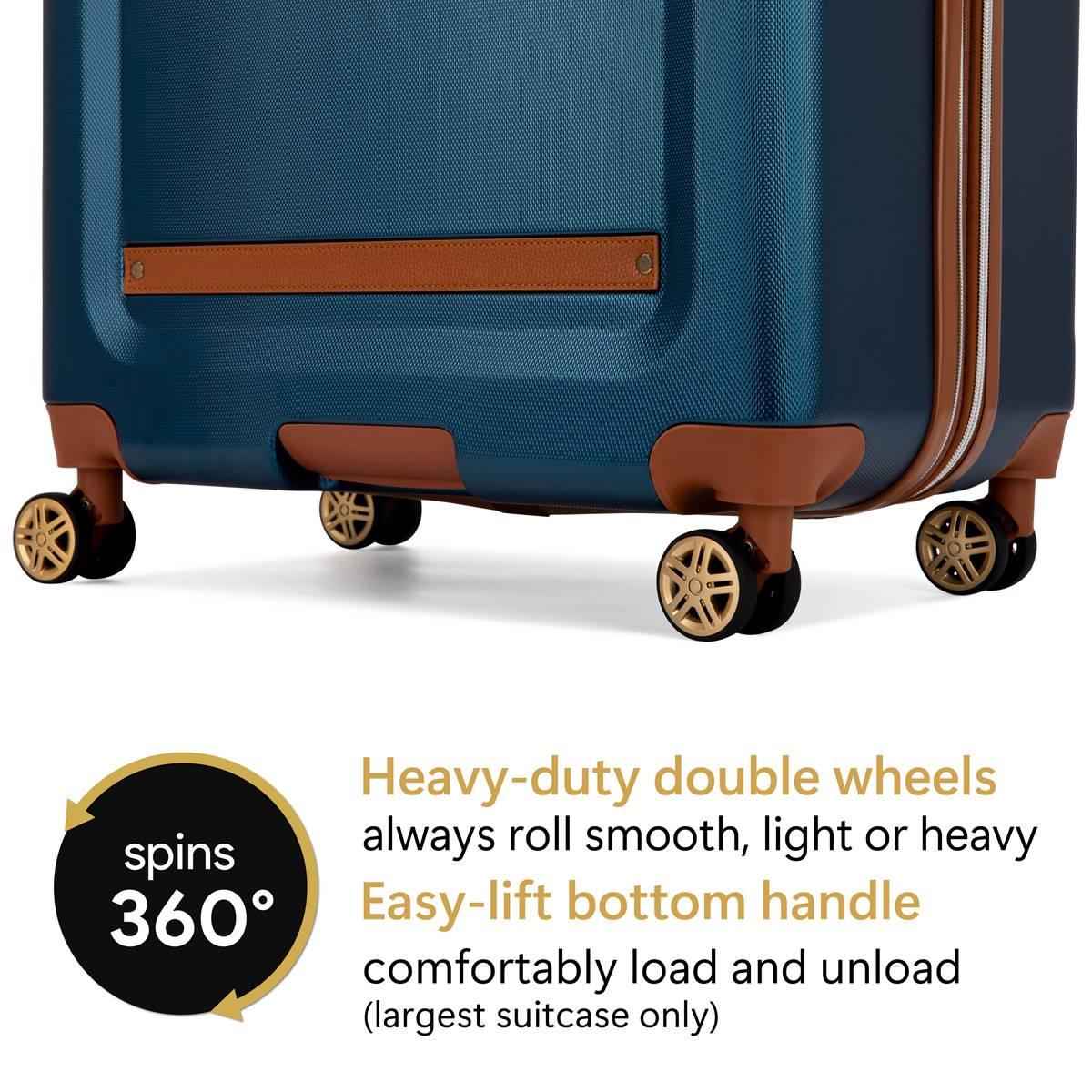 The 19V69 Italia 3-piece expandable retro hardside spinner luggage set will help you quickly identify your luggage with its unique vintage look. Every aspect was considered when designing this beauty. The set has organization, style, comfort, and durability, and a scratch-resistant diamond texture. Features: Made from thick ABS, accented with vegan leather strips, Polyester Eight spinner wheels that roll smooth, quiet, and handles heavyweights The large suitcase is equipped with a bottom lift-assist handle The adjustable trolley system is sturdy, light, and comfortable Expandable body with differentiated zipper pullers for hassle-free additional packing capacity 3-piece nested set for a small storage footprint Zipper-separated compartments Zipper mesh pocket Two shoe pockets Small zipper pocket Compression straps Interior dimensions: Small 20"H x 9"W x 14"D Medium 25"H x 11"W x 17"D Large 29"H x 12"W x 19"D Overall Dimensions (Includes wheels and handles): Small 22"H x 14"W x 14"D Medium 27"H x 19"W x 17"D Large: 31"H x 21"W x 19"D 10-year Limited Warranty This item requires oversize delivery. Please refer to the Order Summary in the Shipping step at checkout for delivery charge.