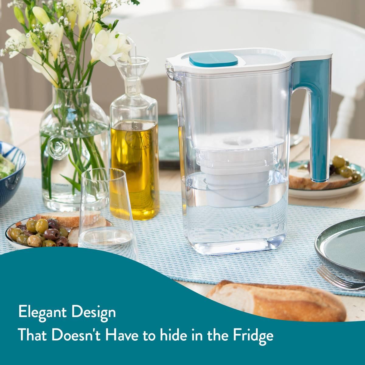 The Aqua Optima 6-cup water filter pitcher with 1 Evolve+ Water filter delivers great-tasting water, easily and quickly. Its unique design eliminates the splashes and spills caused by other brands and delivers a consistent laminar flow of water whether it's completely full, or ready for a refill. The ergonomic handle design and front-positioned slide-opening lid make it easier than ever to refill at the tap.