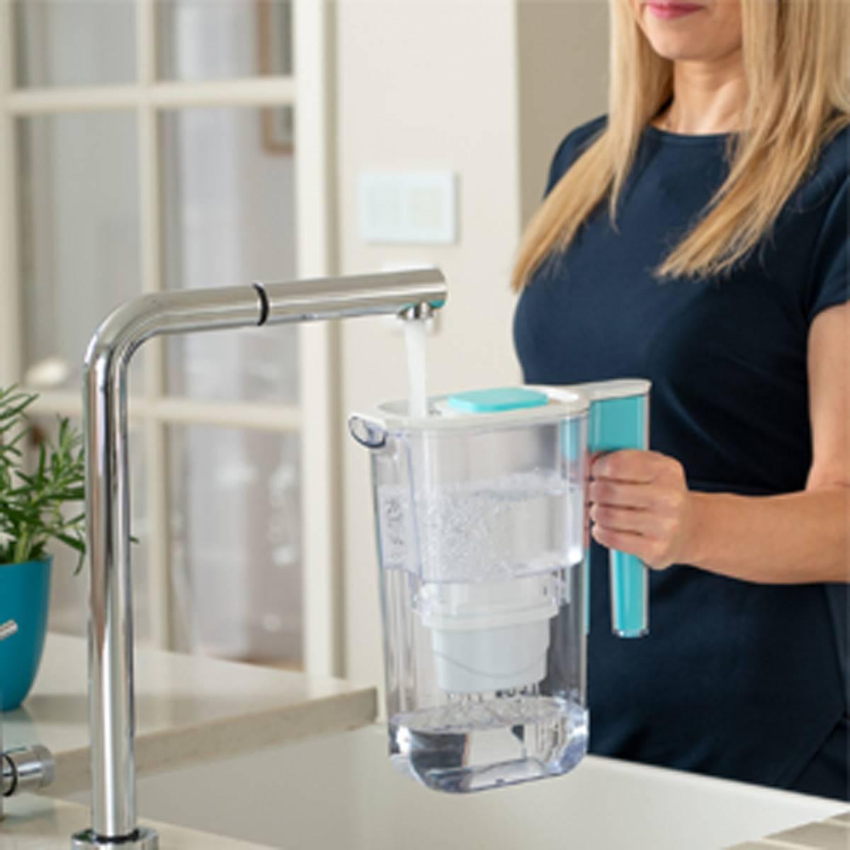 The Aqua Optima 6-cup water filter pitcher with 6 Evolve+ Water filters delivers great-tasting water, easily and quickly. Its unique design eliminates the splashes and spills caused by other brands and delivers a consistent laminar flow of water whether it's completely full, or ready for a refill. The ergonomic handle design and front-positioned slide-opening lid make it easier than ever to refill at the tap.