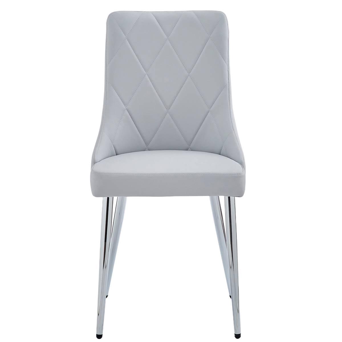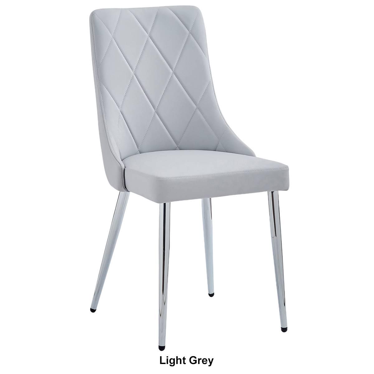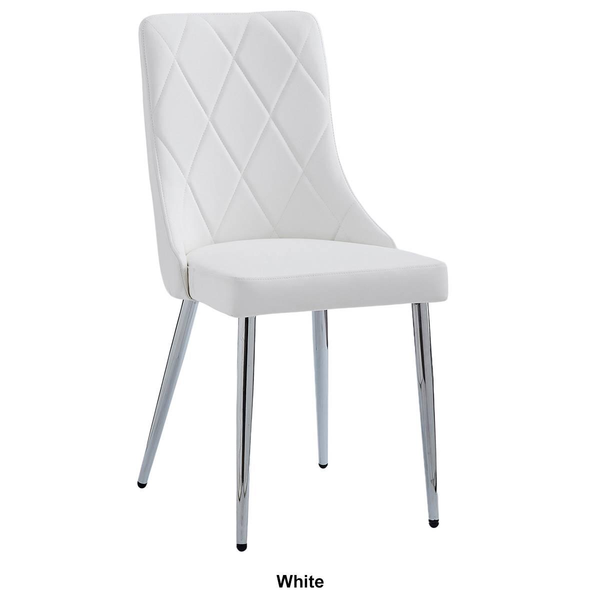 Composed of wood, faux leather, and metal, this set of two Nspire contemporary faux leather armless dining chairs is a show-stopper all on its own. With its curved wood seat frame, seat cushion covered in faux leather upholstery with stitching details on the back, and chrome-finished metal legs, this chair unifies a multitude of elements into one perfectly composed design. The comfortable seat allows for hours of conversation around the dinner table, while the slim, tapered look of the metal legs adds a sophisticated design. The versatility of this unique piece allows it to be styled with a variety of table styles and finishes. This item requires oversize delivery. Please refer to the Order Summary in the Shipping step at checkout for delivery charge. Caution: Flammable Materials Weight Limit: 250 lbs.