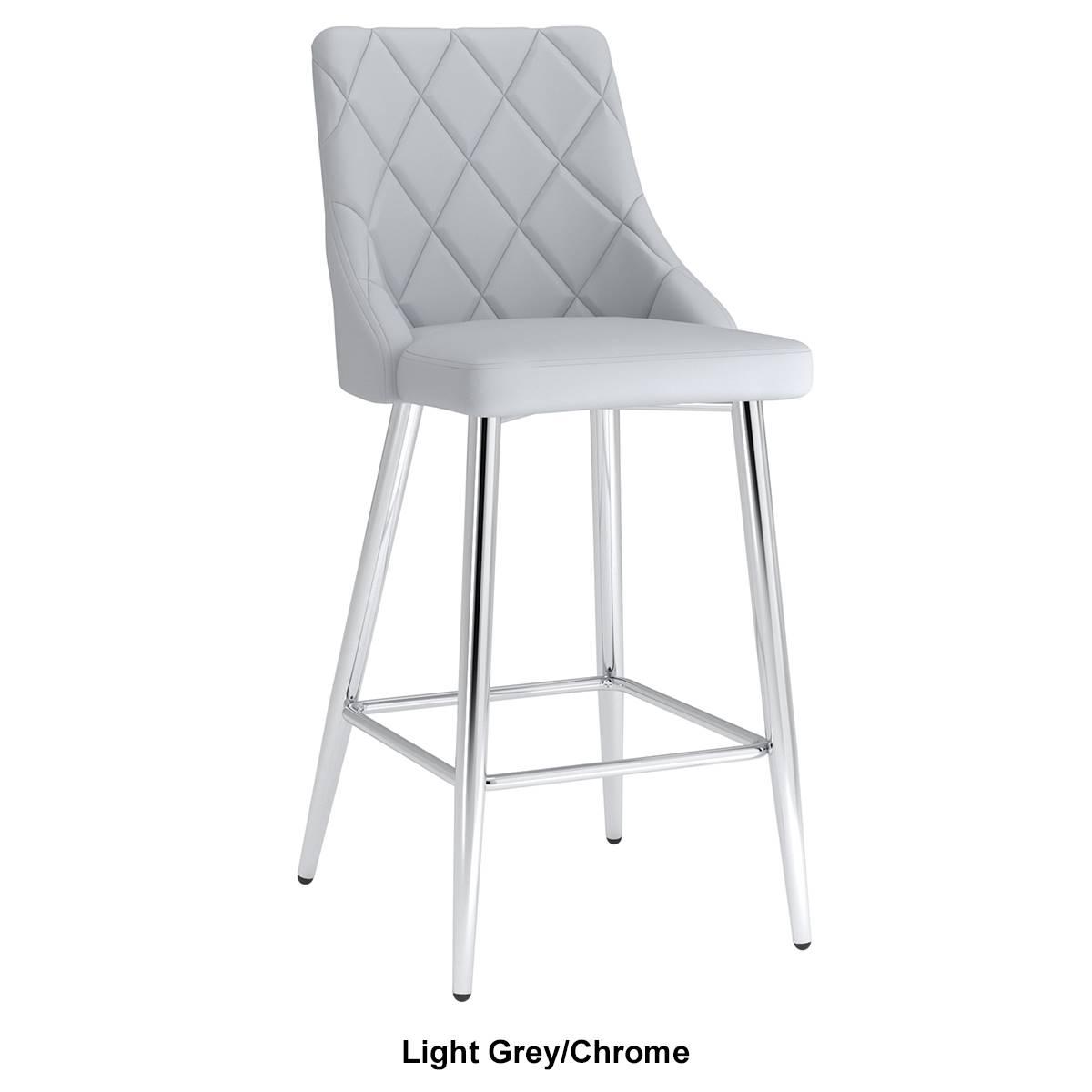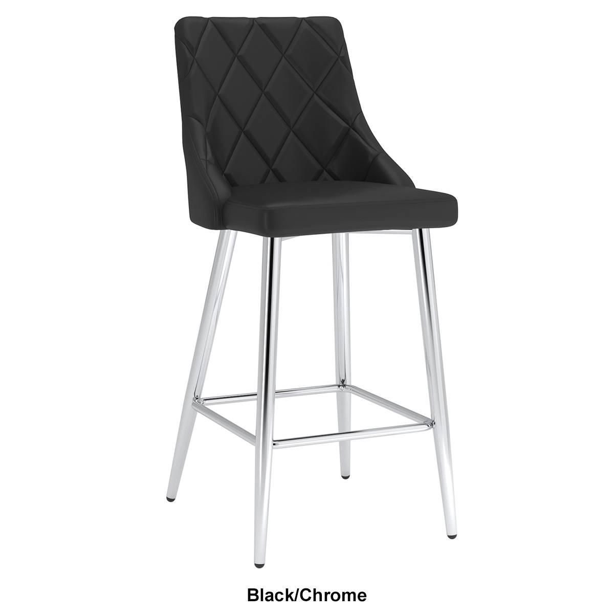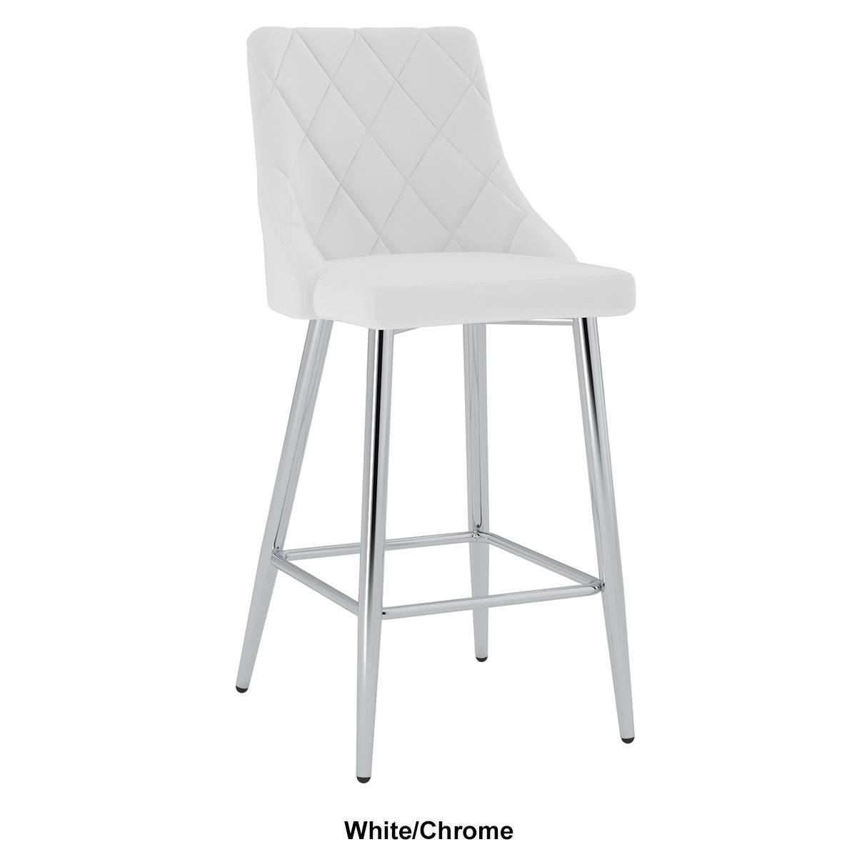 Comfortable, served seating atop a fixed height frame gives this set of two Nspire contemporary faux leather 26-inch counter stools stability and reliability. The diamond-stitched patterns on the faux leather cushioned upholstery will provide hours of comfort and the polished chrome finish will take your decor to the next level. Elevate your kitchen counters with these gorgeous contemporary stools. This item requires oversize delivery. Please refer to the Order Summary in the Shipping step at checkout for delivery charge. Caution: Flammable Materials Seat height: 19" Approximate weight capacity is 250 lbs.