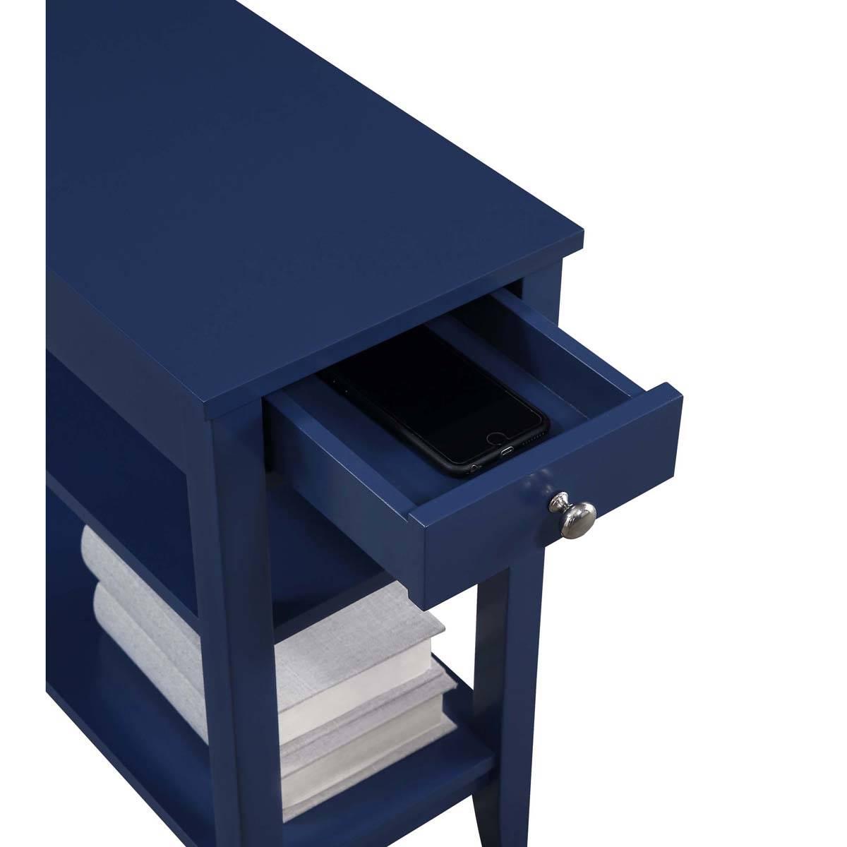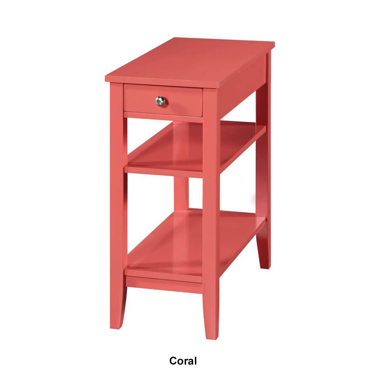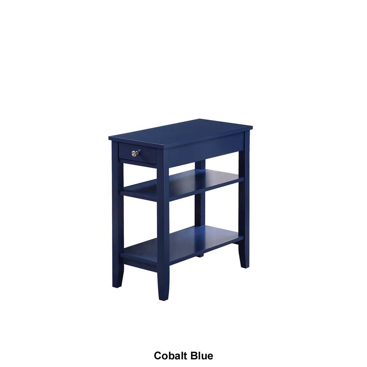 This Convenience Concepts American Heritage Drawer End Table is the perfect complement to any home. Featuring a drawer for hidden storage, you can hide away unsightly controls and accessories. Also featuring a middle and bottom shelf, you will have plenty of space to display collectibles or store magazines. This item requires oversize delivery. Please refer to the Order Summary in the Shipping step at checkout for delivery charge. Limited Manufacturer's Warranty. Material: MDF, Solid Rubberwood, Veneer.