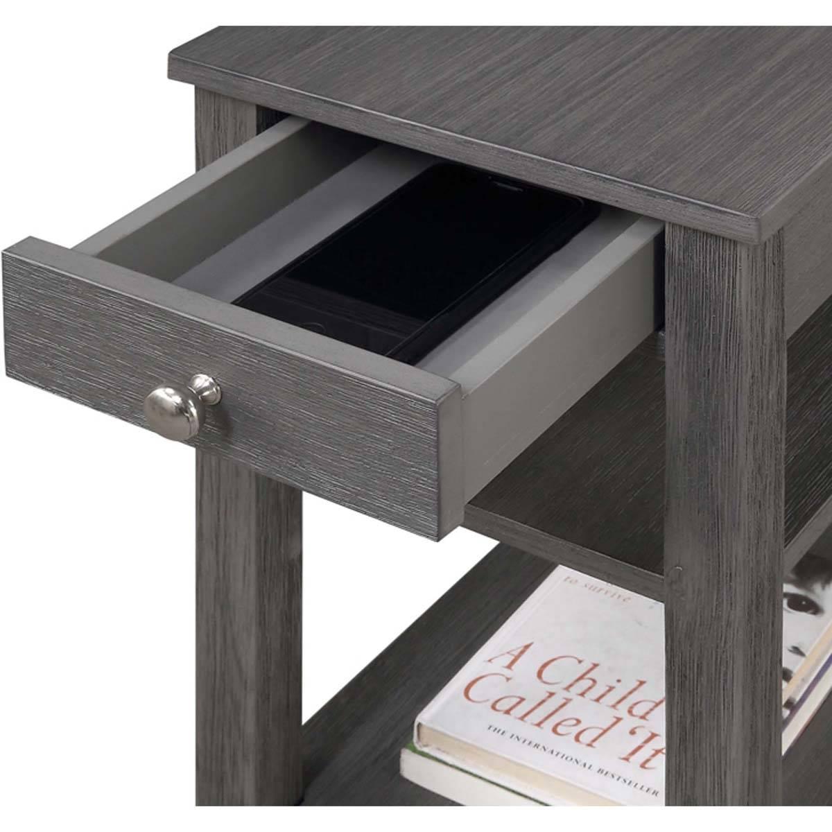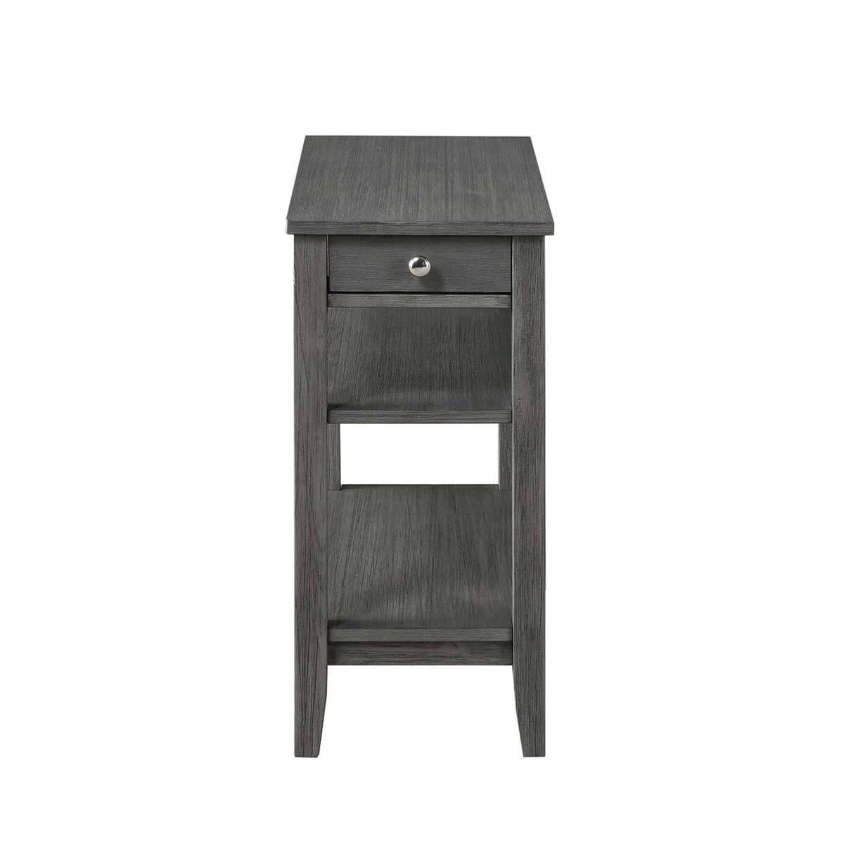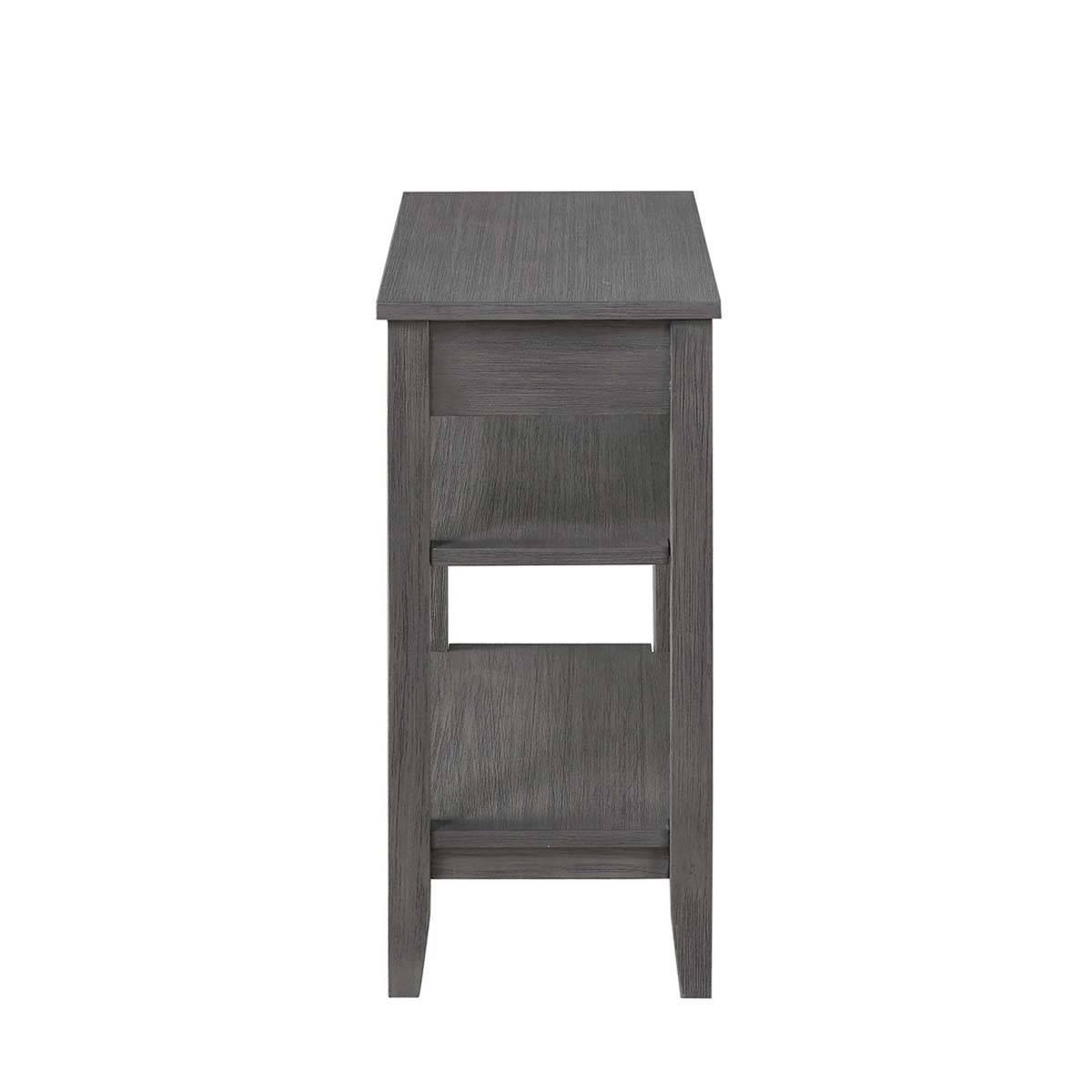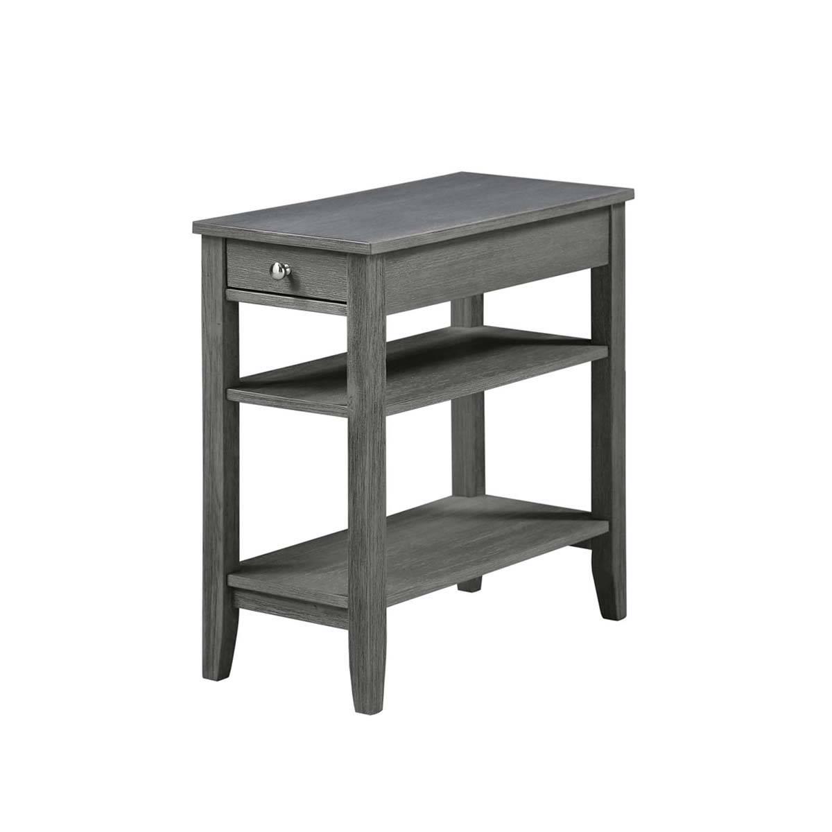 This Convenience Concepts American Heritage Wirebrush Chairside End Table is the perfect complement to any home. Featuring a drawer for hidden storage, you can hide away unsightly controls and accessories. Also featuring a middle and bottom shelf, you will have plenty of space to display collectibles or store magazines. This item requires oversize delivery. Please refer to the Order Summary in the Shipping step at checkout for delivery charge. Limited Manufacturer's Warranty. Material: MDF, Solid Acacia, Veneer.