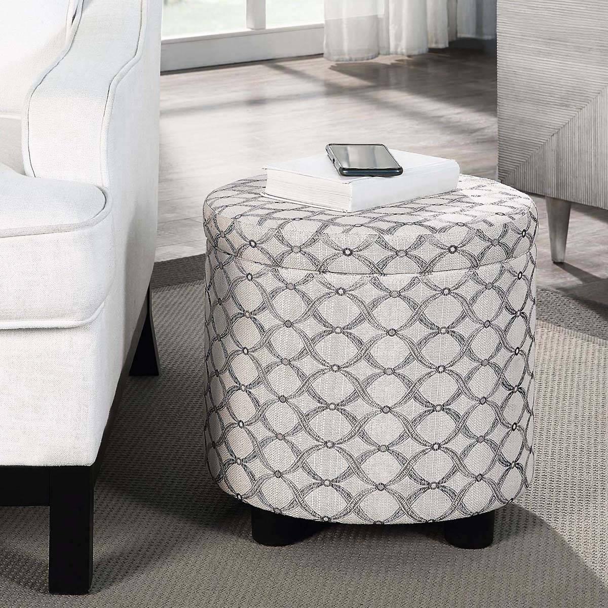 Kick your feet back and relax with this Convenience Concepts Designs4Comfort geometric storage ottoman. This simple yet stylish ottoman adds easy functionality to any space. Pair with your favorite sofa or use it as a decorative accent piece. Store a blanket and more in this multi-use piece that features a removable lid for concealed storage. Limited Manufacturer's Warranty. Material: Fabric, Polyester, EYP, Ply, MDF.