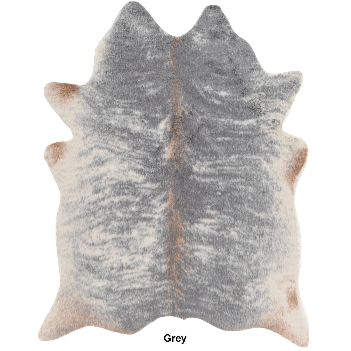 The Linon Home Decor faux cowhide area rug uses state of the art printing methods to take the patterns and colors on a short hair like material with a faux suede backing. This rug has the look and feel of a real cowhide with the benefits of a synthetic rug that will look great in any room. This item requires oversize delivery. Please refer to the Order Summary in the Shipping step at checkout for delivery charge. Limited Manufacturer's Warranty.
