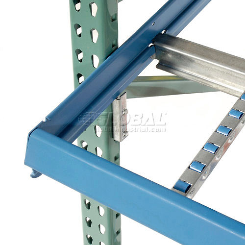 GRAVITY FLOW LEVELS Pallet Rack Flow Level retrofits your pallet rack to a carton flow rack in moments! Clips allow installation to any Tear Drop Pallet Rack or uprights with 2" centers and slotted openings of 7/16"minimum. This gravity flow level helps add more products in half the space! Increases productivity and workflow by increasing ease of reach and minimizing travel. Knockdown levels easily bolt together. Includes 4 hanging clips per level for easy height adjustments. Smooth front beams accept sticker labels for identification. Kenrail roller tracks are made with 22 gauge inverted channel steel and include 7/8" dia. rollers on 1 " centers. 22 gauge roll-formed steel guide rails adjust at " increments for lane adjustments. Levels include 12 Kenrail and 5 guide rails. Clips allow 1" height adjustments. 25 lb. per sq. ft. capacity. Can be used on & deep Pallet Racks.
