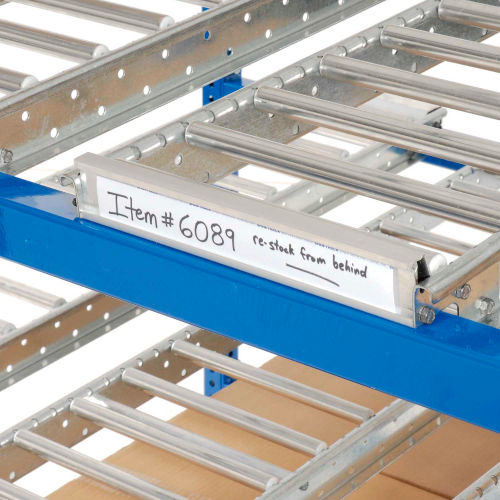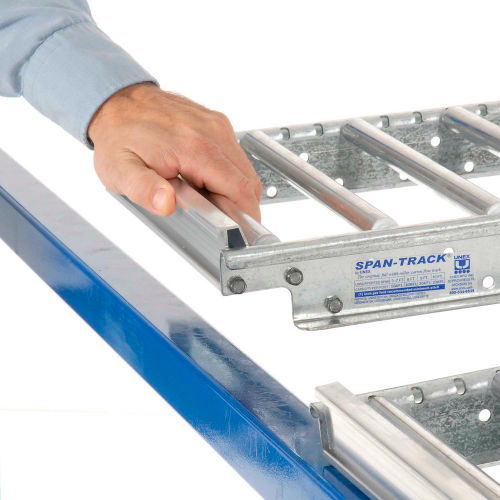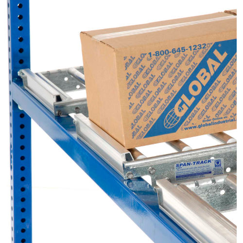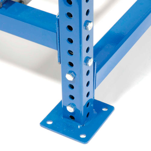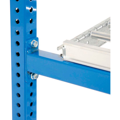 HEAVY DUTY GRAVITY FLOW RACK 4 Level Add-on Unit These multi-level storage units with flow tracks allow front feeds and keep products at pick point. Uprights and horizontal beams are made from 1-3/4" square tube steel. Welded base plates allow floor anchoring. Includes four 12"W roller tracks per level. Levels adjust at 3" increments. Powder coat finish. Rollers are " diameter tempered aluminum with full length 3/16" steel axles. 1000 lb. capacity per level. Includes 2 upright posts, 4 front to back beams, 2 cross beams per level, 4 roller tracks per level and hardware. Easy assembly. 7 Year Limited Warranty.