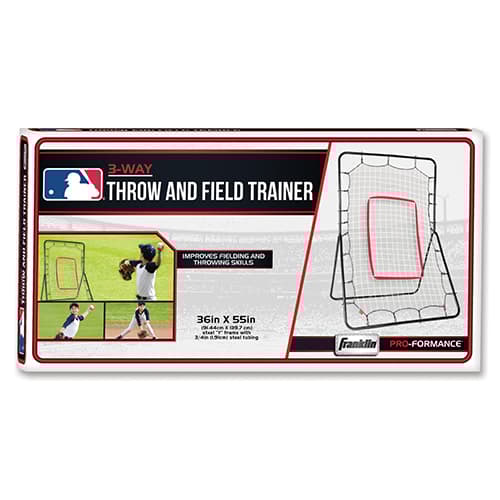 Franklin(R) Sports MLB 55 inch 3-way pitch return features all-weather steel construction with a heavy-duty netting and target ribbon to resemble a standard size strike zone. Dimensions: 55"H x 36"W.