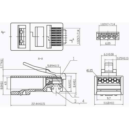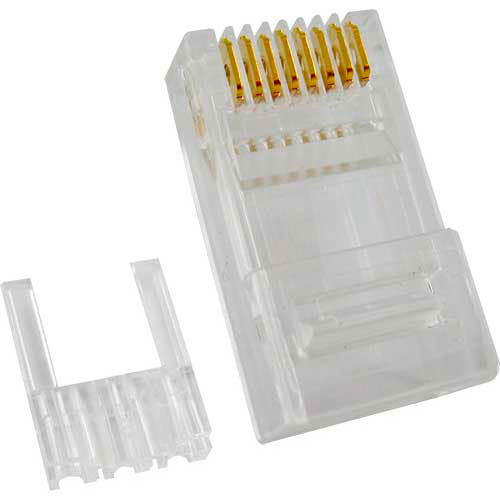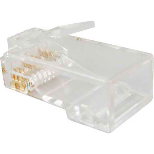 Vertical Cable, 012-022-100, Cat 6, RJ45 Modular Plugs, 8P 8C, 50 Micro-Inches Gold Plated, 100/Pack 50 Micro-Inches Gold Plated 3 prong For Stranded or Solid Cable 23AWG to 26AWG Cable Polycarbonate Housing Transparent 50u" Gold Plating RoHS Compliant 100 per bag.
