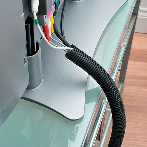 Organize clusters of cords dropping behind desks in neat and flexible tubes. The split seam makes cords easy to insert or remove manually without the use of tools.