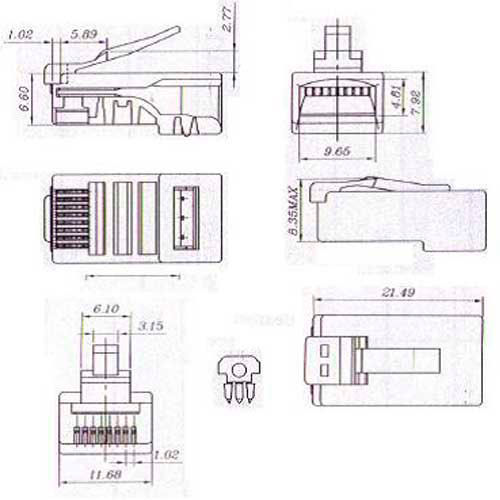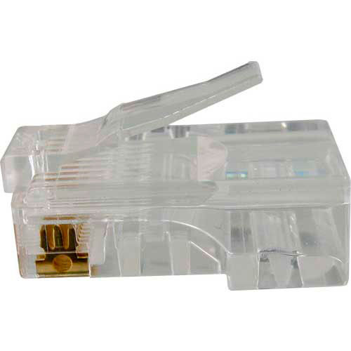 50 Micro-Inches Gold Plated 3 prong For Stranded or Solid Cable 24AWG to 26AWG Cable Polycarbonate Housing Transparent 50u" Gold Plating RoHS Compliant.