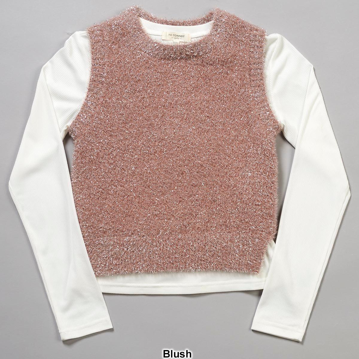 Girls (7-16) No Comment Long Sleeve Yummy Rib Top w/ Shimmer Vest