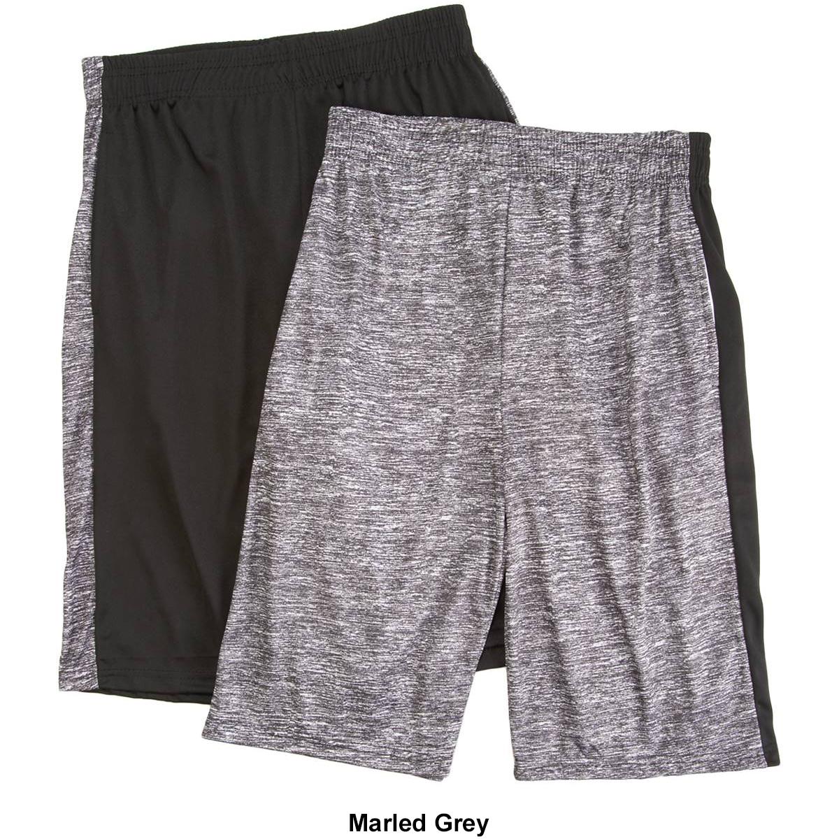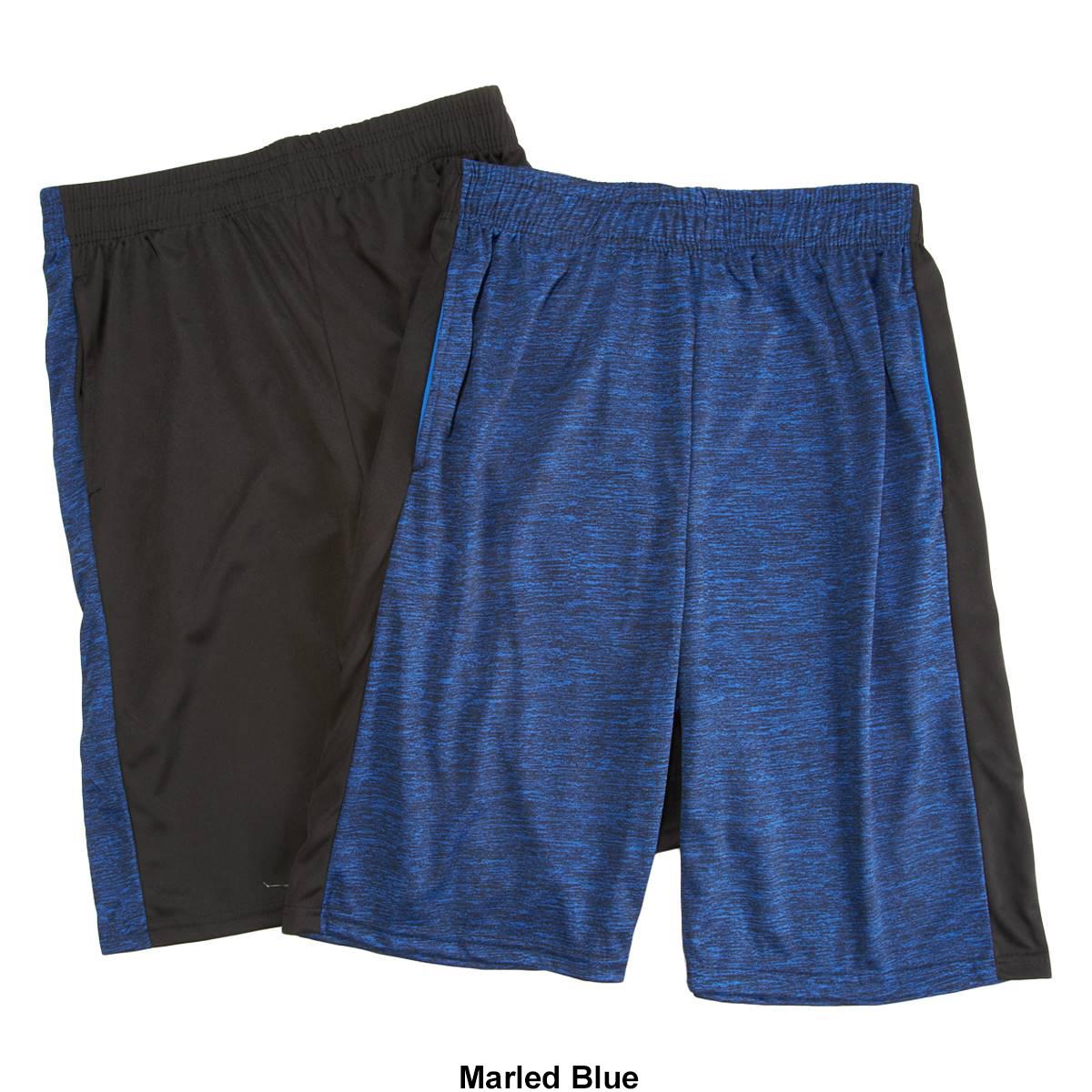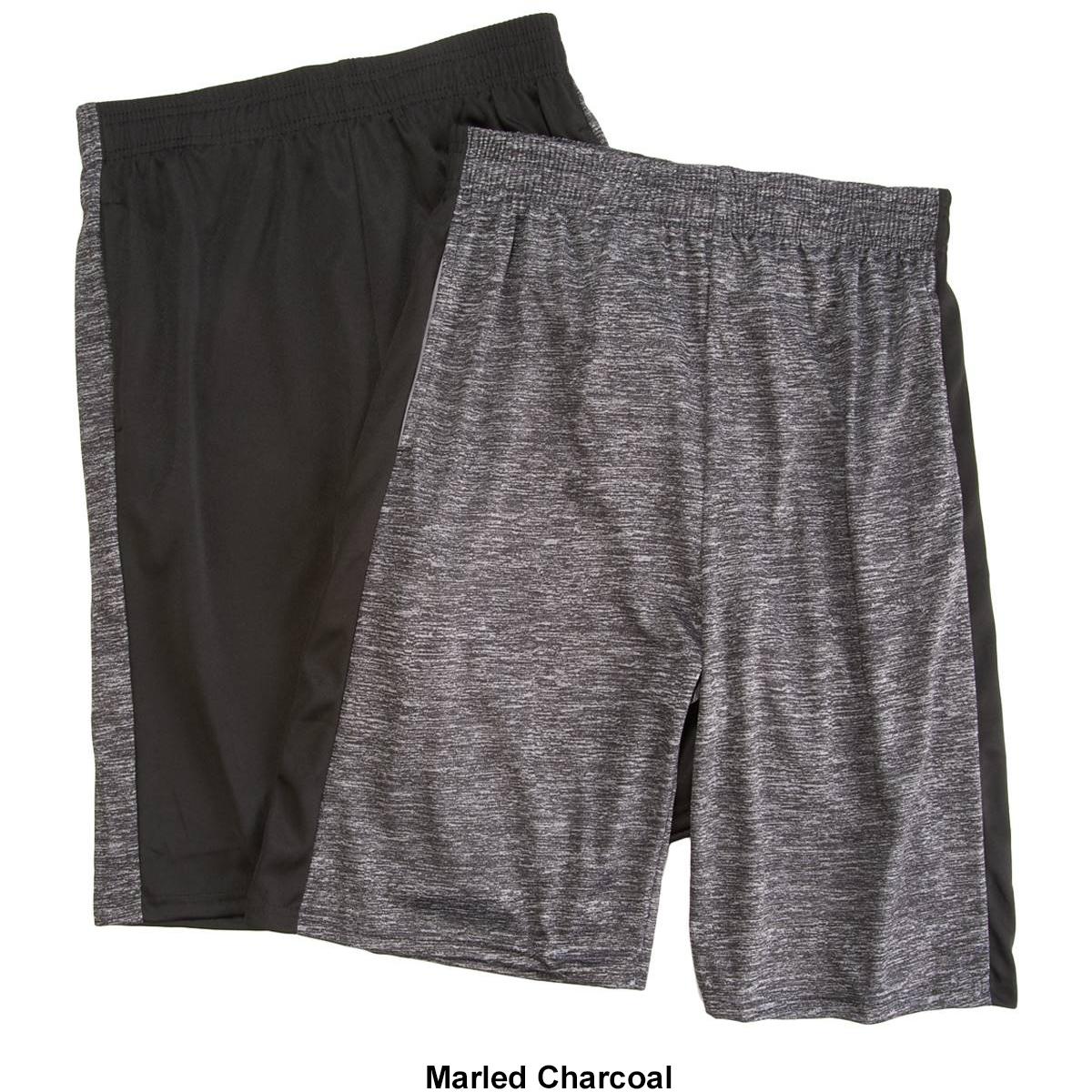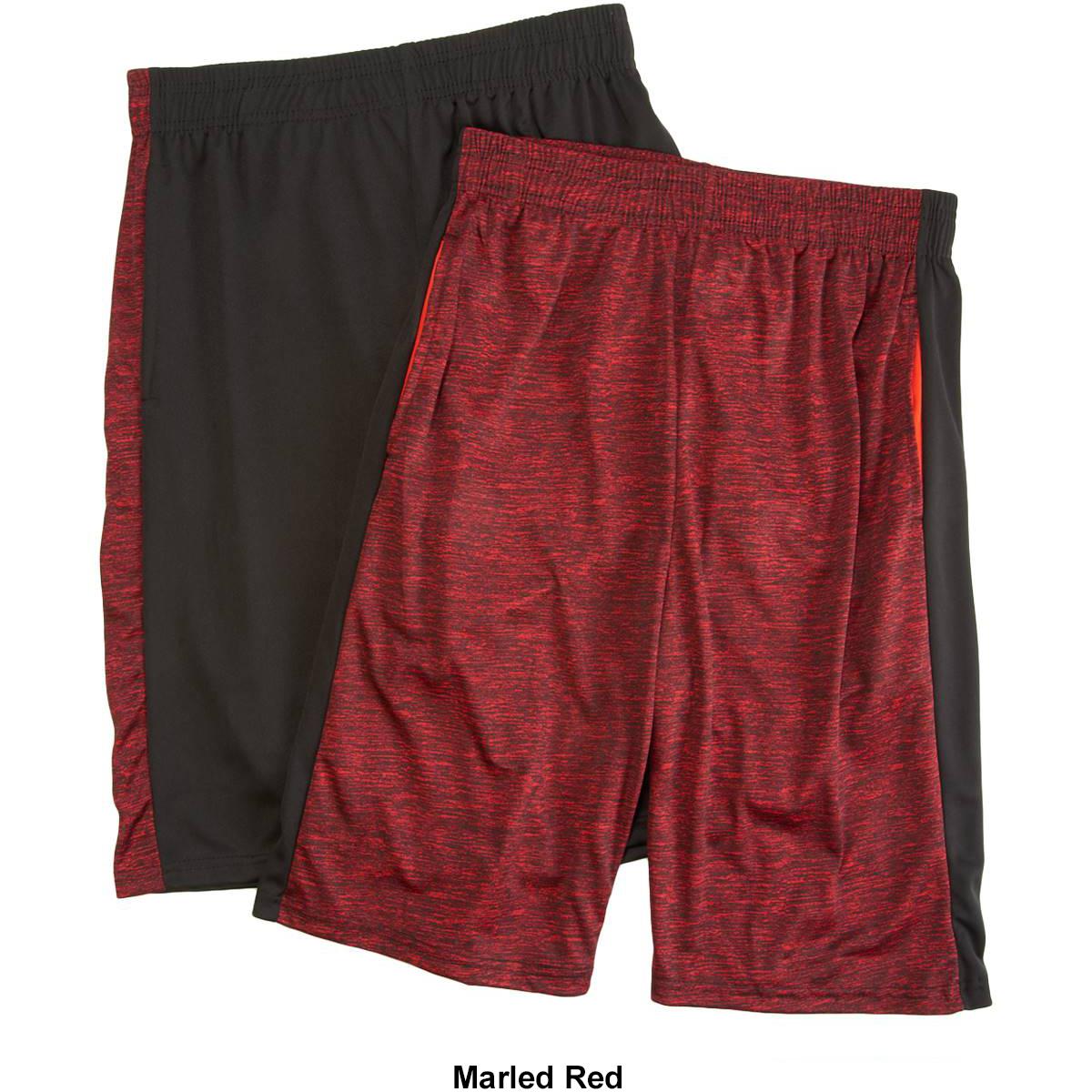 Stay looking active with this Mens Ultra Performance 2-pack of marled and solid side panel shorts. The shorts feature an elastic waist, contrasting side panels, and side pockets.