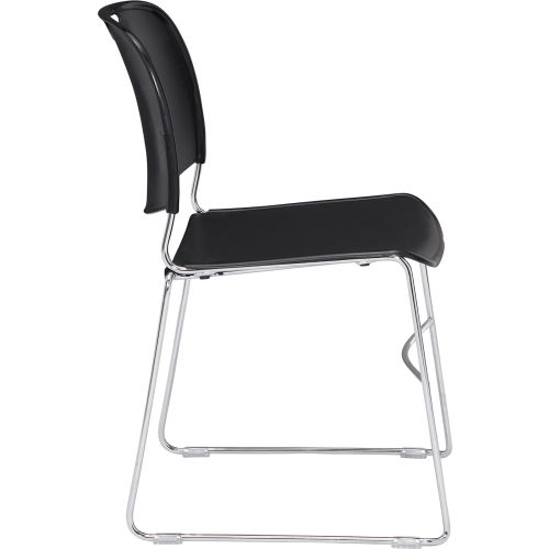 Interion Stack Chairs are perfect for training rooms, conferences, breakrooms and a variety of other settings. This comfortable plastic stack chair has an 11mm steel rod chrome plated frame with an injection molded, textured polypropylene seat and back that resist fading. Reinforced underseat ribbing for support helps to prevent cracking. The chairs can be stacked up to 40 high. Easy lift handle allows strong grip when moving and storing chairs. Removable protective floor glides guard against skidding. 10 Year Limited Warranty. Chairs come in packs of 4. MAS Certified Green. ANSI/BIFMA Certified. - Pkg Qty 4.