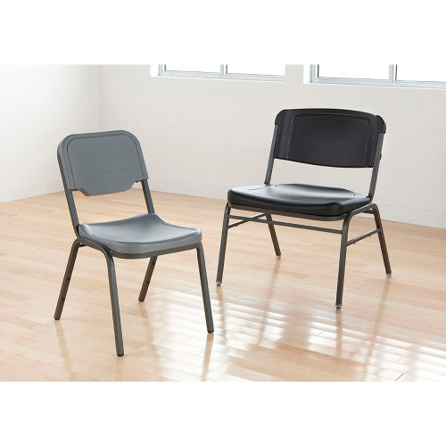 Buy Iceberg Plastic Stack Chair - Charcoal - Pack of 4 - Rough 'N Ready Series for $445.95 at @ Globalindustrial.com