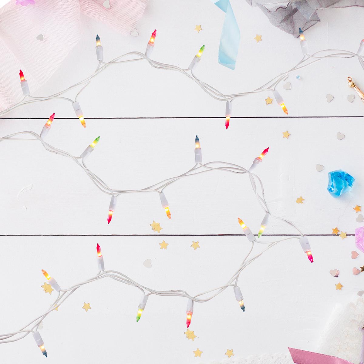 Create an inviting atmosphere for the Easter bunny with this Northlight Seasonal 35 count multi-color mini Easter light set. The beautiful soft pastel colors breathe new life into your home interiors or even your yards or patios. The light bulbs are equipped with a Lamp Lock feature which makes them replaceable, interchangeable, and keeps them from falling out. They are UL certified and approved for indoor or outdoor use and if one bulb burns out the rest will stay lit. These lights come with replacement bulbs, a spare fuse, and end-to-end connectors allowing you to stack multiple lighted items together, not to exceed 210 watts. Number of bulbs on string: 35 Spacing between each bulb: 2.5" 7 ft. white wire 12" lead cord 3" tail cord Wire gauge: 22 120 volts 60 hertz 0.12 amps 14.4 watts Material: Glass bulbs, Wire.