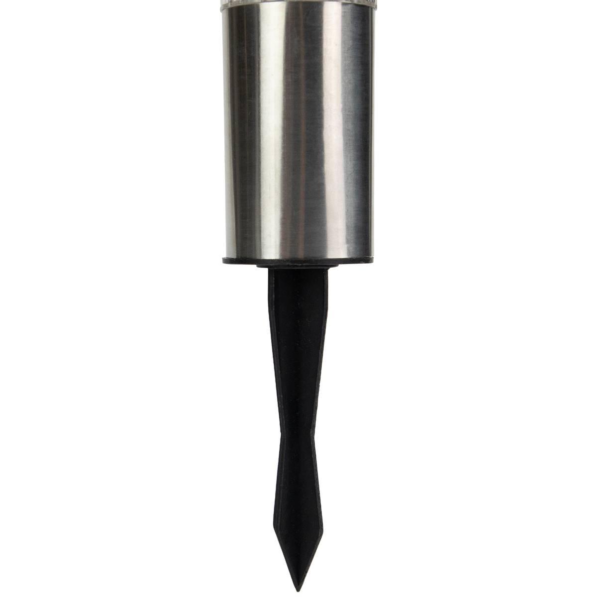 Designed to illuminate your pathways driveway or garden these solar lights provide bright energy efficient light that will last all night long. Made with weather resistant materials each marker has a solar panel that absorbs the sun during the day and automatically turns on at dusk. These solar lights emit a bright white light that is both attractive and functional. The solar powered feature makes installing these markers easy allowing you to use them in any place that gets direct sunlight. Upgrade your outdoor lighting today! Markers contain (1) 1.2VAAA 2/3 300mAh NI-MH rechargeable battery Working time: 6-8 hours Ground stakes are included.