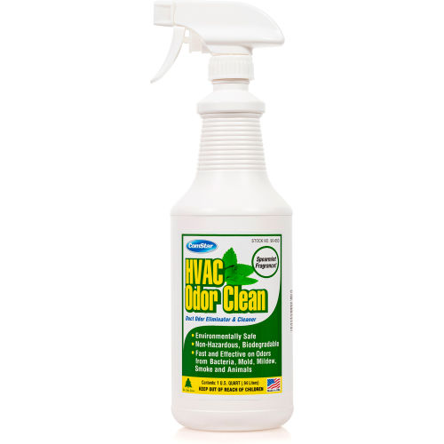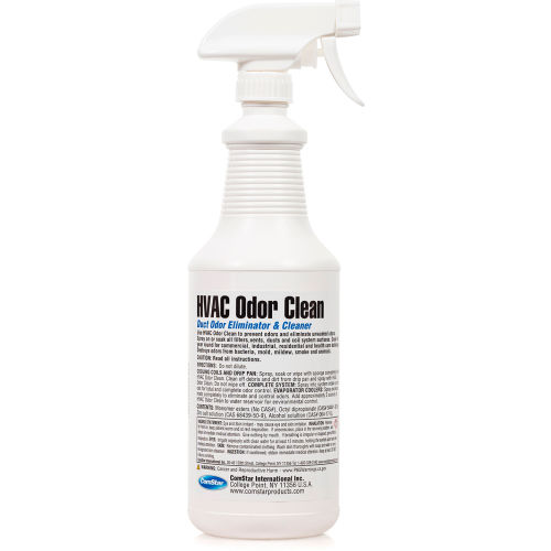 Safely cleans and eliminates odors in HVAC systems and ventilation ducts/registers by spraying or soaking with HVAC Odor Clean. Use on all filters, vents, coils and duct system surfaces. Neutralizes most unwanted odors and cleans at the same time. Environmentally safe Destroys odors from bacterial breeding grounds, mold, mildew, smoke, animal waste and spoiled food Cleans system surfaces Contains no perfume Non-caustic, non-acidic.