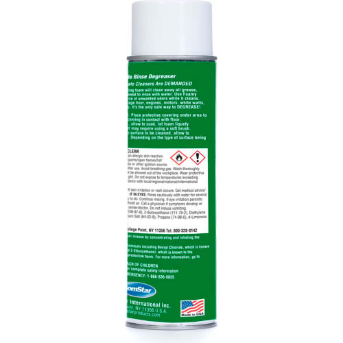 ComStar's Foamy Clean is a non-corrosive, biodegradable, and self-rinsing degreaser. Its fast-acting foam will clean away all grease, grime, dirt, oxidation and oil without the need to rinse with water. Use Foamy Clean to deodorize and eliminate the source of unwanted odors while it cleans. Foamy Clean is great for hundreds of jobs such as cooling coils, boiler jackets, garage floor, engines, motors, white walls, printing presses. Foamy Clean is CFC free, low V.O.C., and will not contaminate waste oil. It's the only safe way to degrease! Advantages: Foamy Clean is self-rinsing, fast breaking foamFoamy Clean cleans & deodorizesFoamy Clean is CFC free and low V.O.C.Foamy Clean is biodegradableFoamy Clean will not contaminate oil Buy yours today! - Pkg Qty 12.