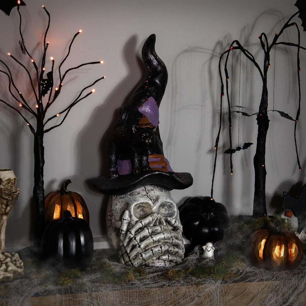 Buy Northlight Seasonal Skull in Witch Hat w/ Cat Halloween Decor for $59.99 at @ Boscovs.com