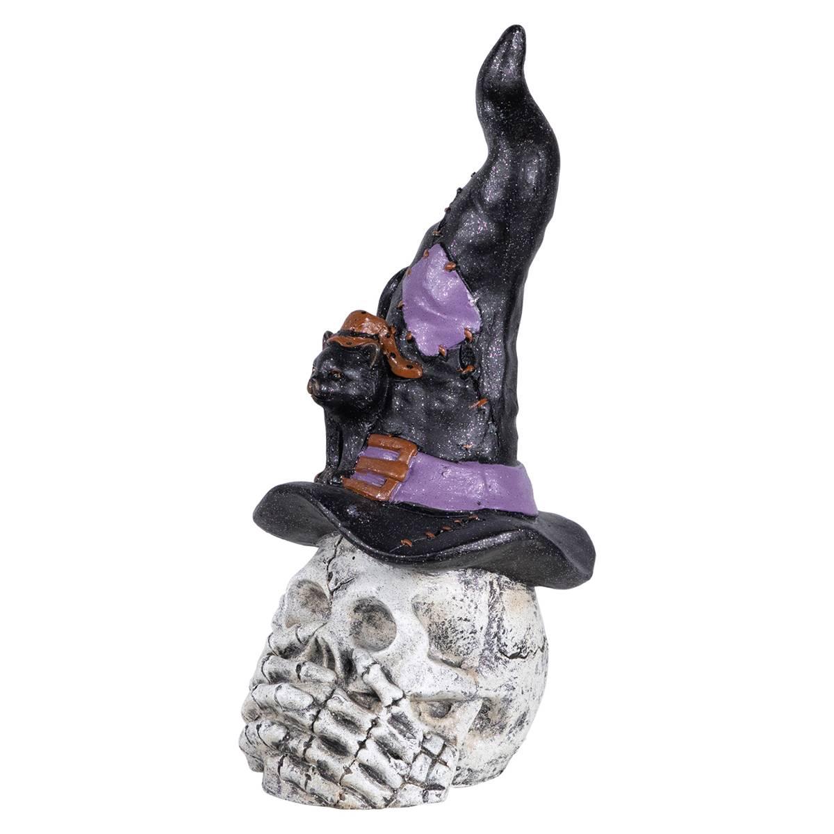 Northlight Seasonal Skull in Witch Hat w/ Cat Halloween Decor