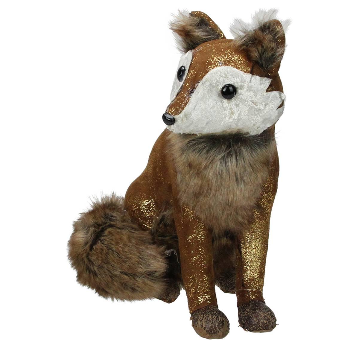 Having a woodland themed Christmas this year? From the Midnight Glamour collection, this beautifully crafted Northlight Seasonal 10.25 inch plush sitting fox table figure is the perfect way to add a subtle sparkle to your woodland holiday decor. Great on a mantle, shelf or end tables and makes a great gift. The fox is lying down with its head turn to the left and has asuede-like body with metallic gold flecks,faux fur covers its neck, tail, and ears with cream velveteen patches on its face.