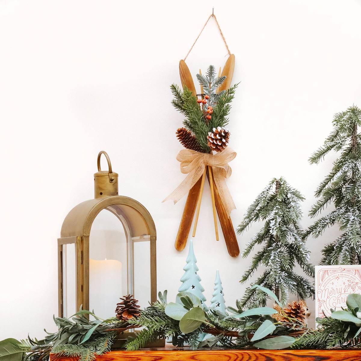 National Tree 17in. Holiday Skis Floral Wall Hanging Decor