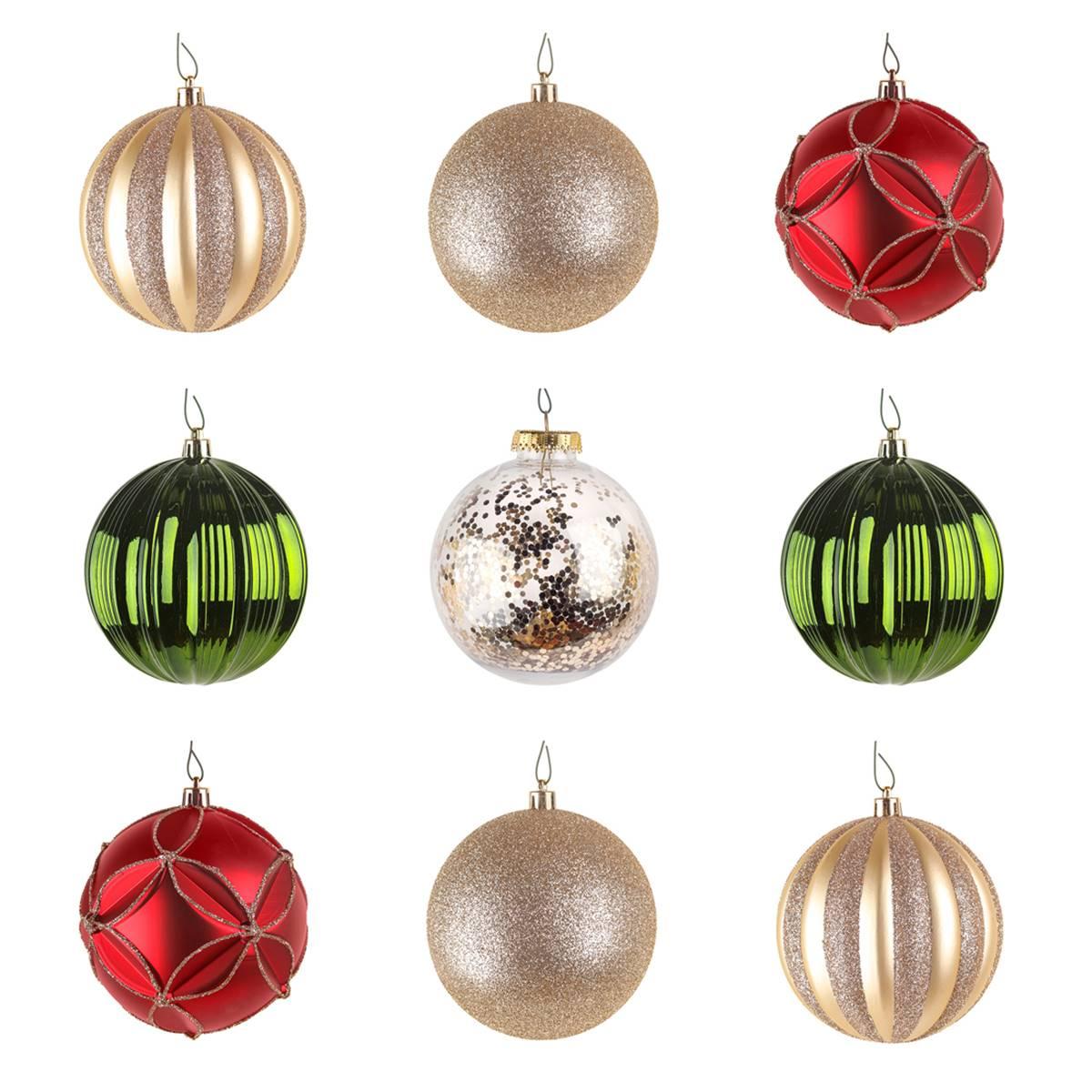 National Tree 13in. Gold, Red, & Green Ball Ornaments - Set of 9