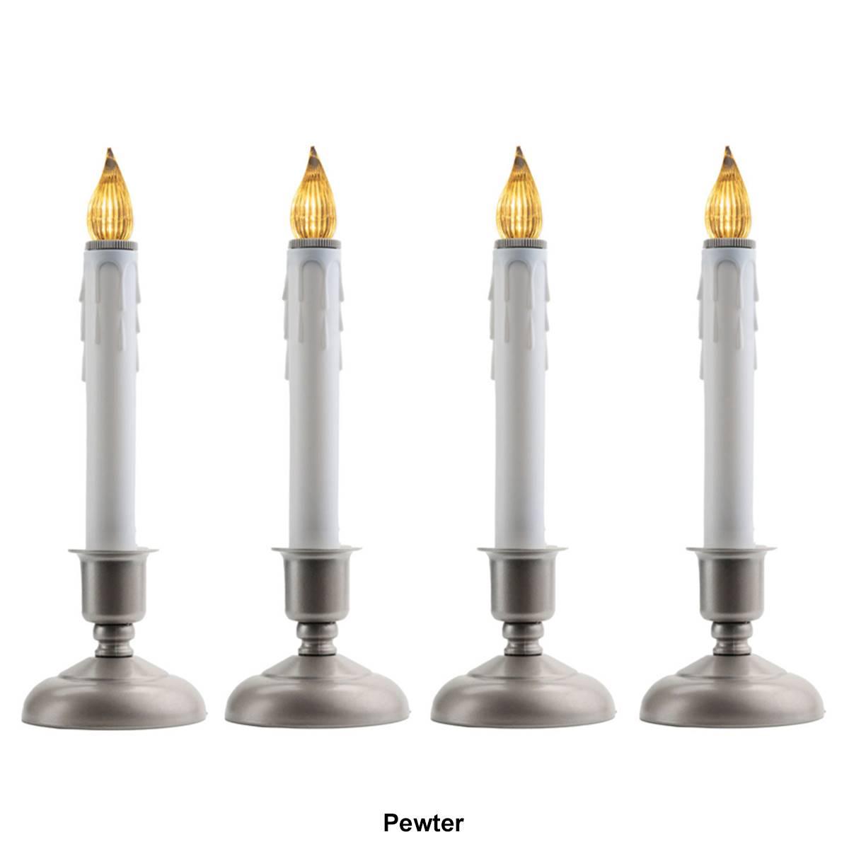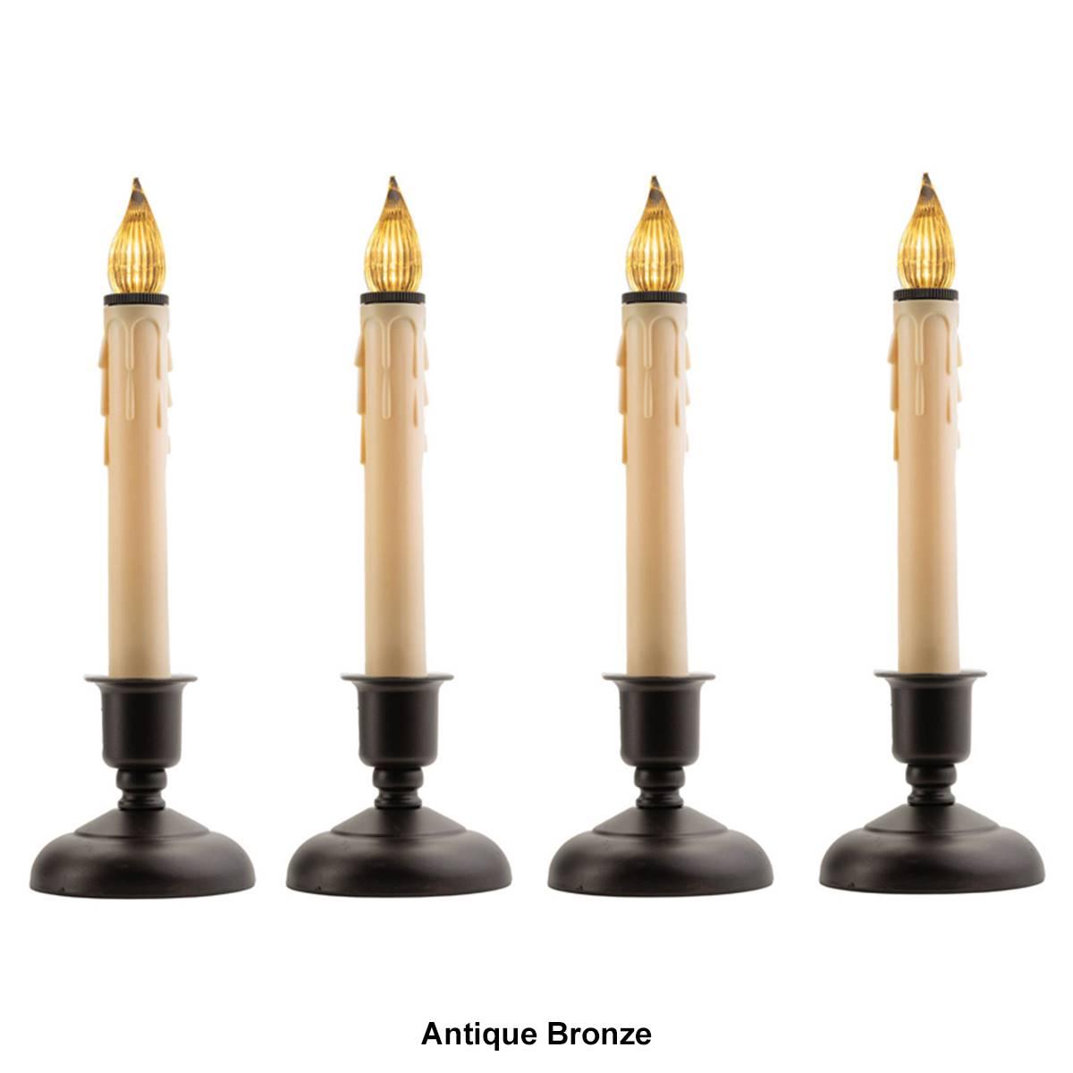 This IMC Cape Cod 4-piece LED battery window candle set enhances the beauty of your home, lighting at night as a sign of welcome to all. Low wattage allows the candle to run for months on 2 AA batteries (not included). Requires AA batteries (not included) Light sensor turns candles on/off automatically Patented double LED bulb lasts up to 120,000-hours 9" tall with weighted base.