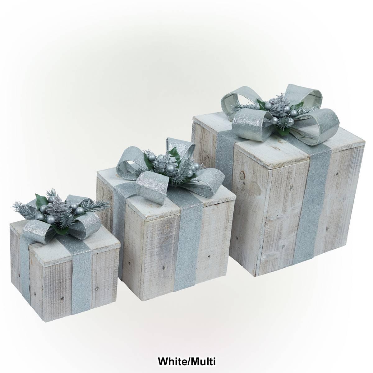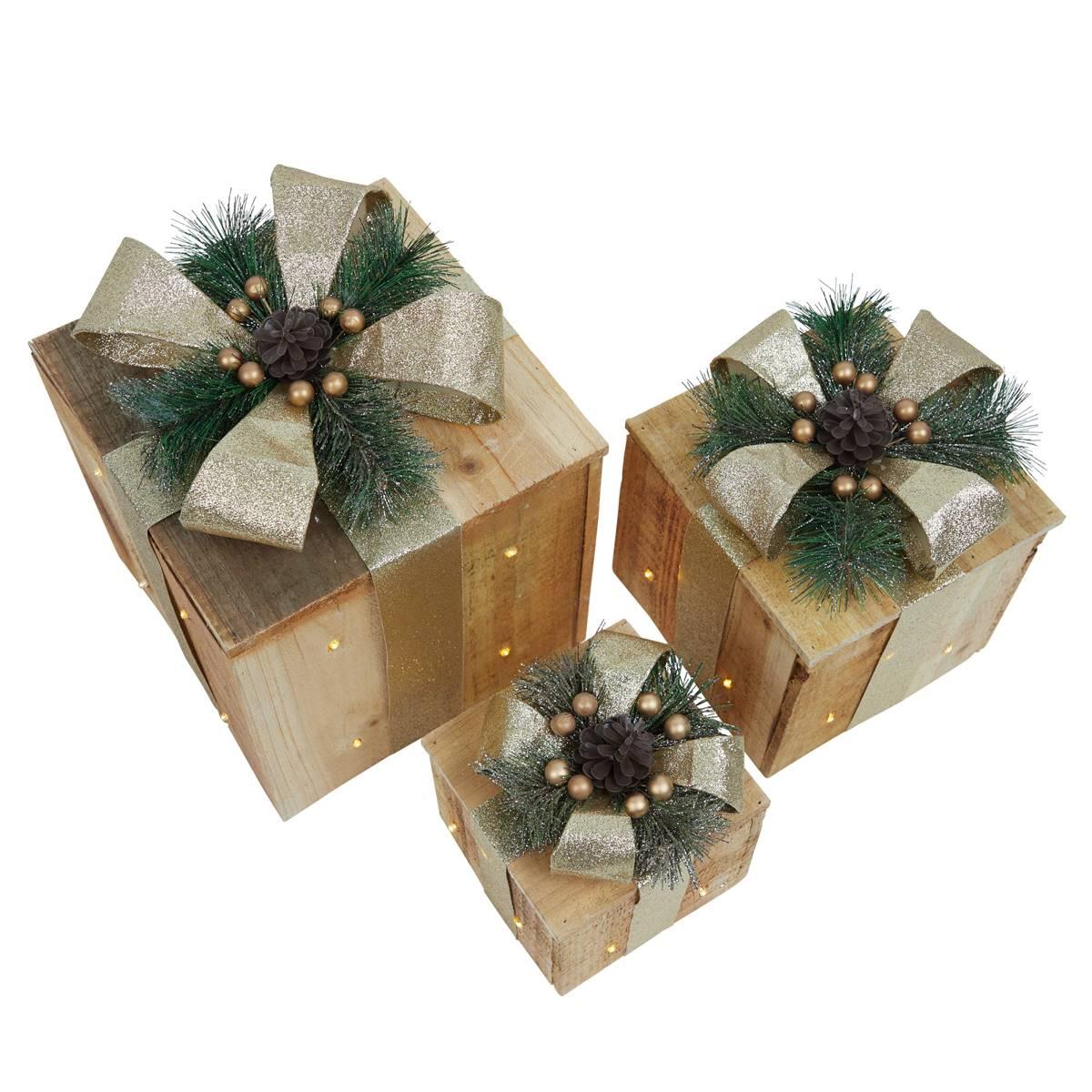 Alpine 3pc. Decorative Wooden Christmas LED Gift Box Set